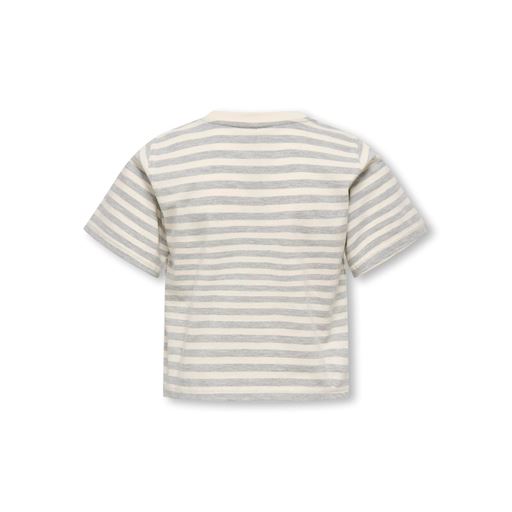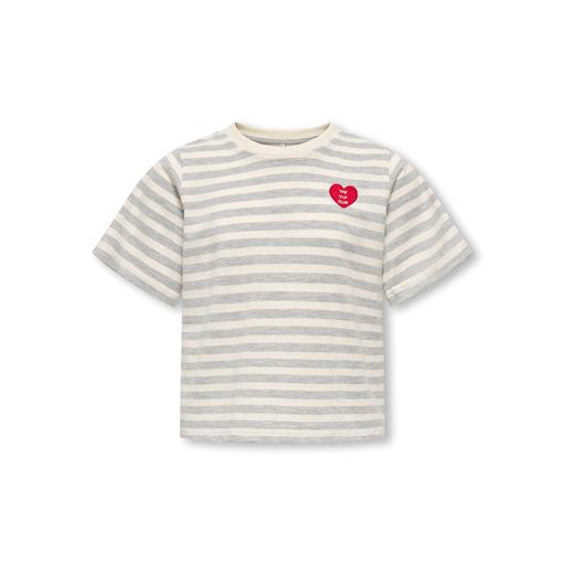 Livina O-Neck Stripe T-shirt, Grey Cloud Dancer/Heart Red, 158-164 cm