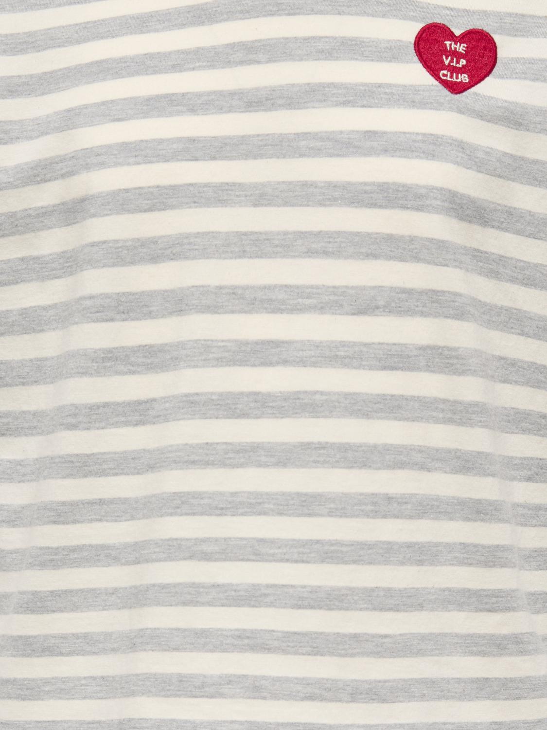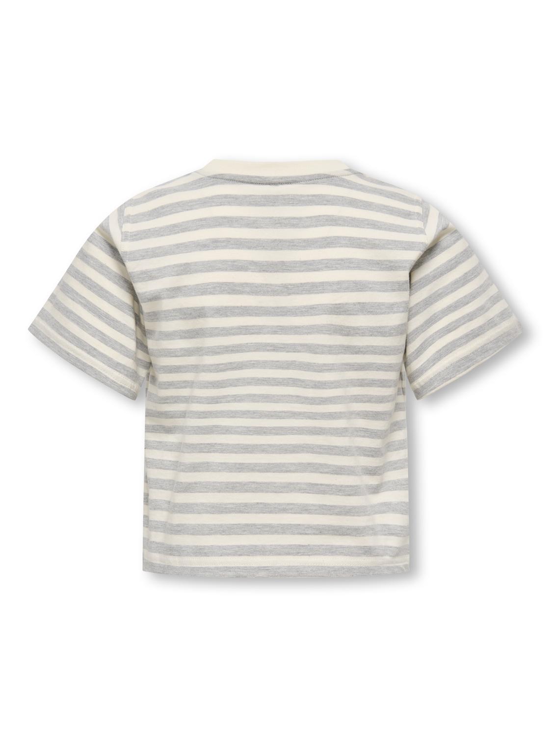 Livina O-Neck Stripe T-shirt, Grey Cloud Dancer/Heart Red, 158-164 cm