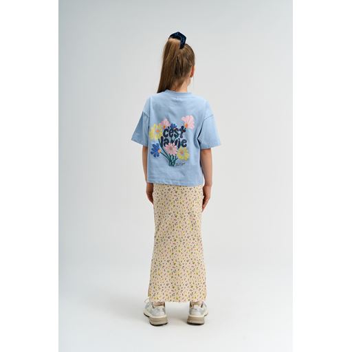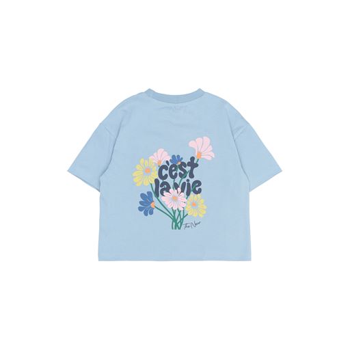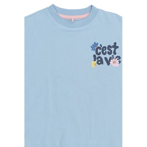 - Lille brystprint med teksten “c’est la vie” og små blomster