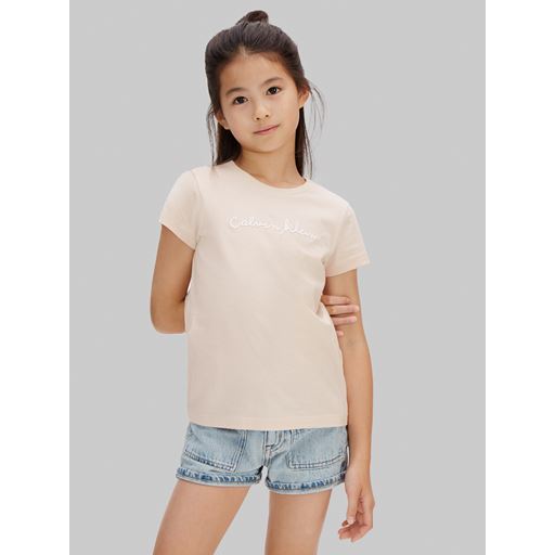 Script Logo Slim T-shirt, Pearl, 164 cm