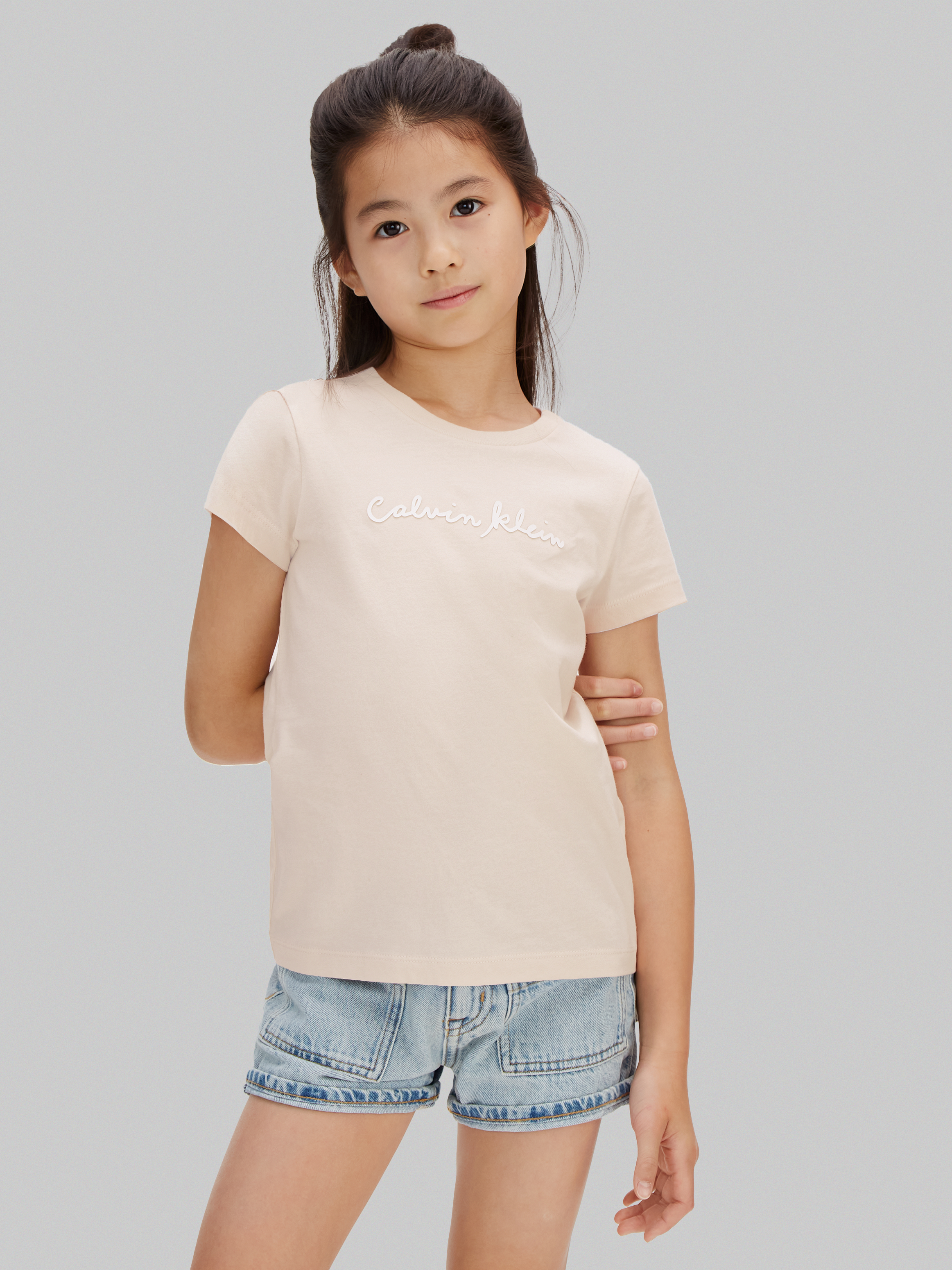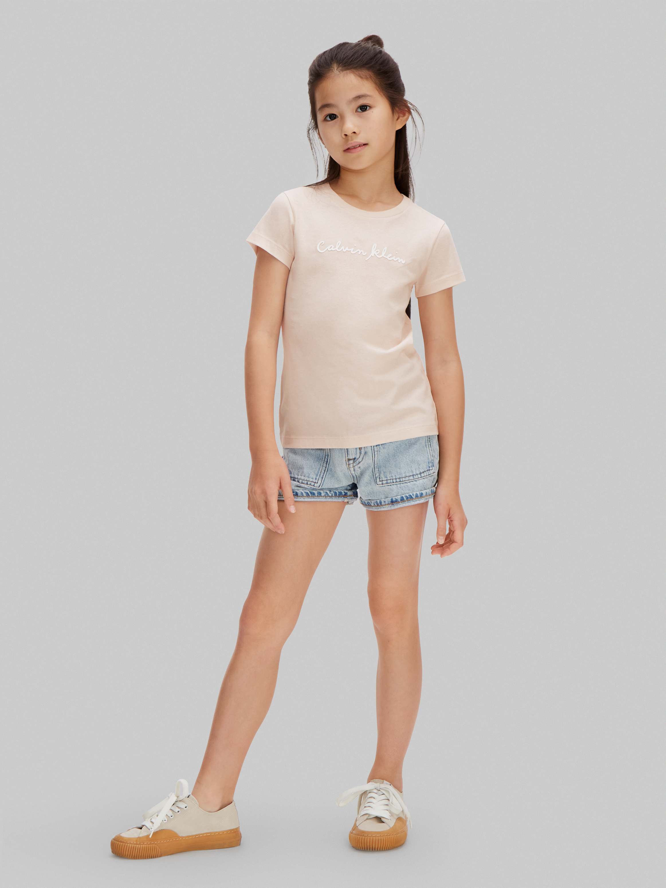 Script Logo Slim T-shirt, Pearl, 164 cm