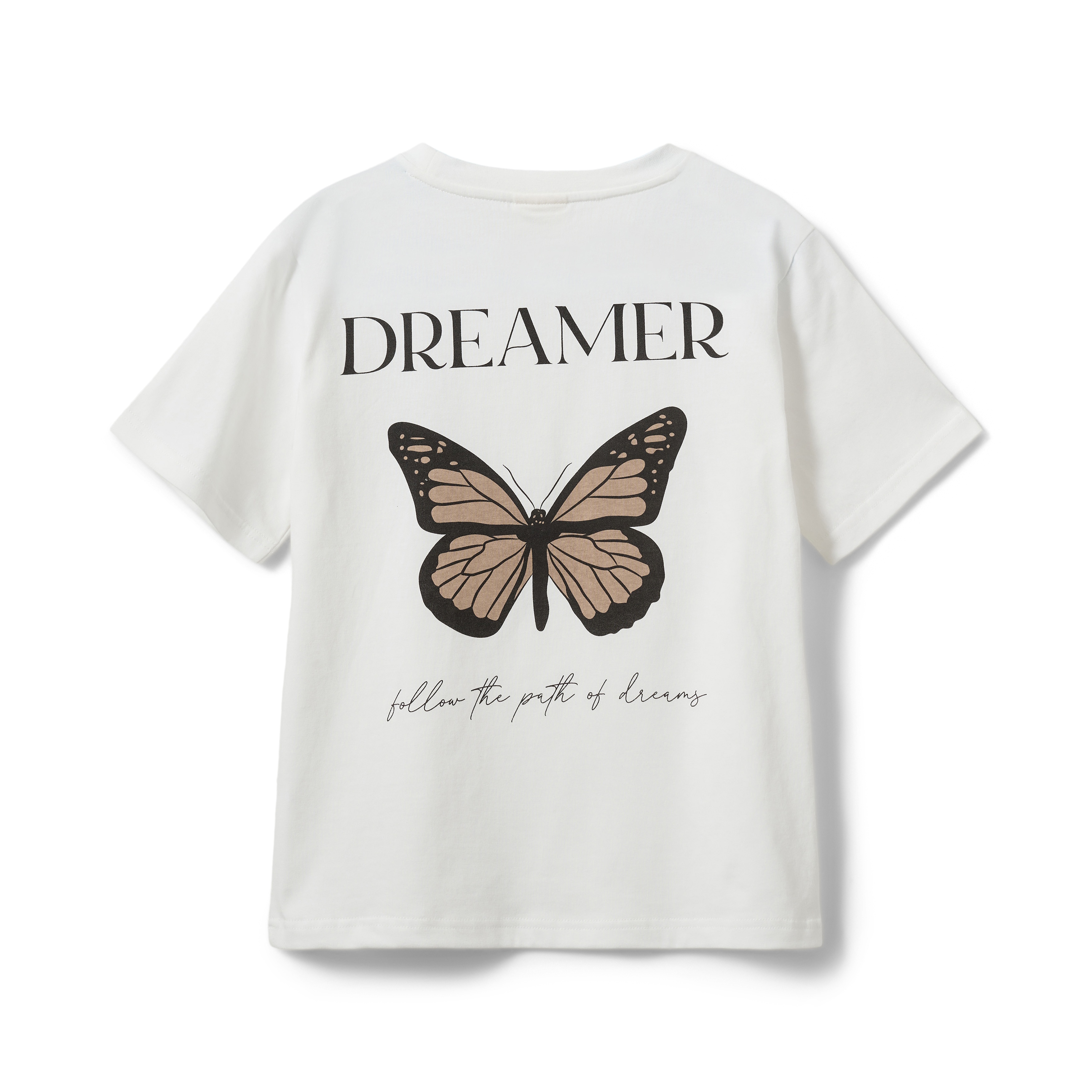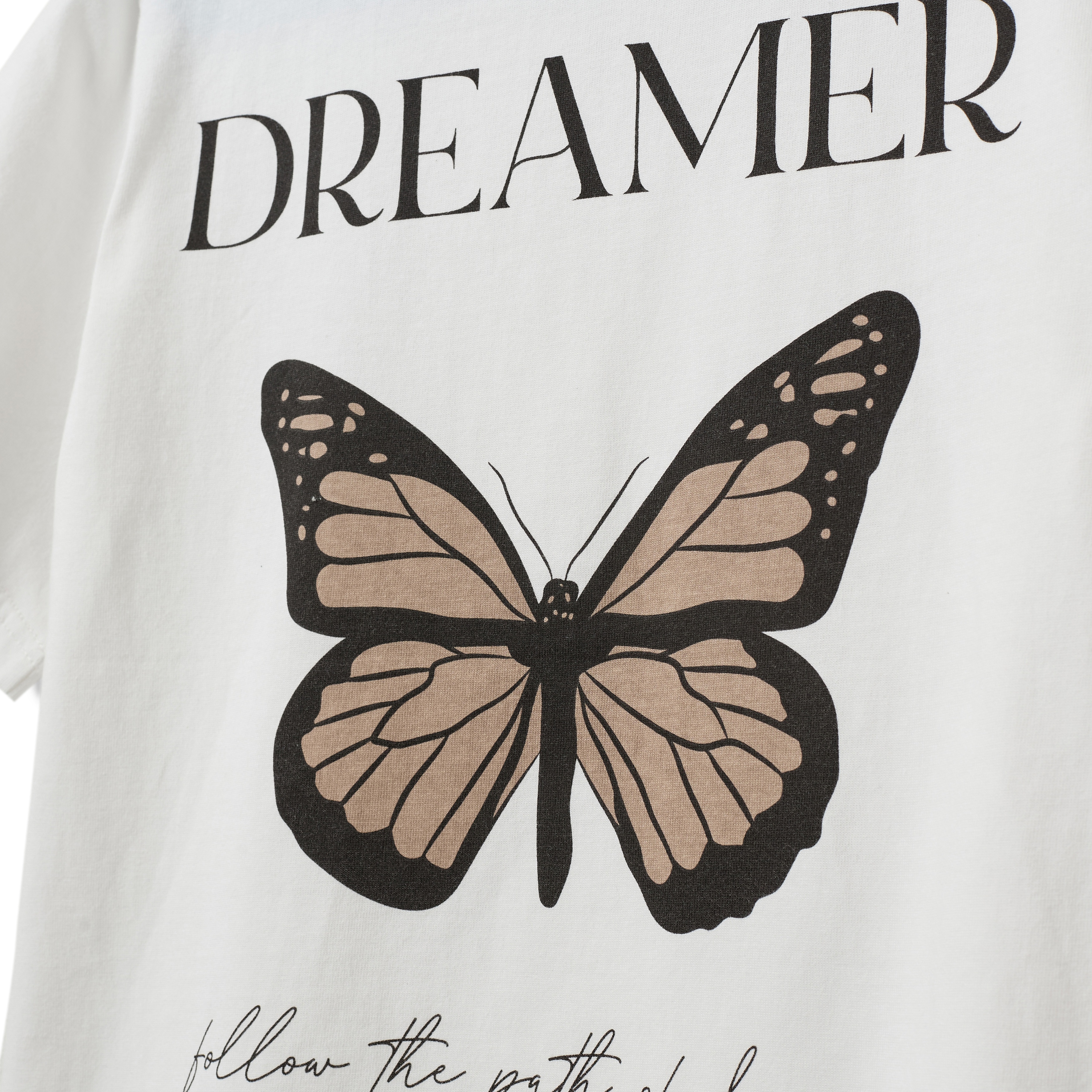 - Print af sommerfugl og tekst på venstre bryst og ryg