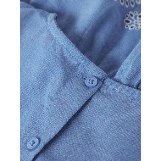 - Broderie anglaise detaljer ved flæserne og bund