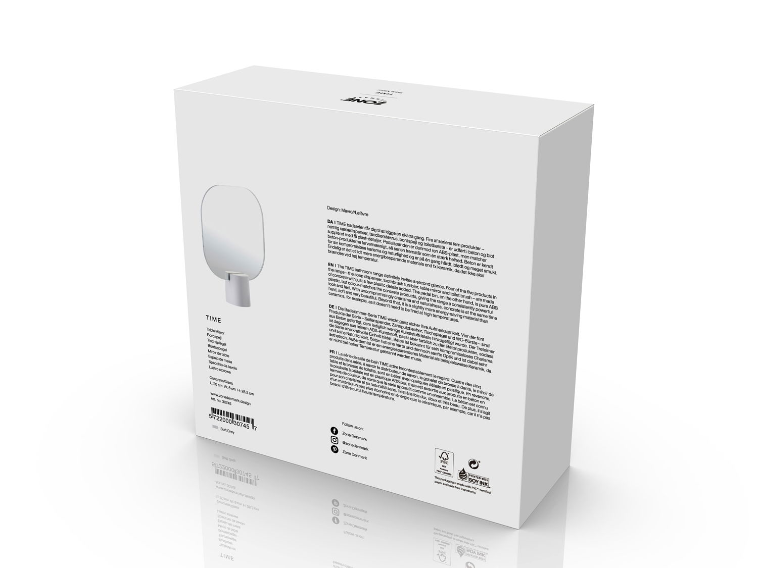 Time Bordspejl, Soft Grey, 20x26,5 cm