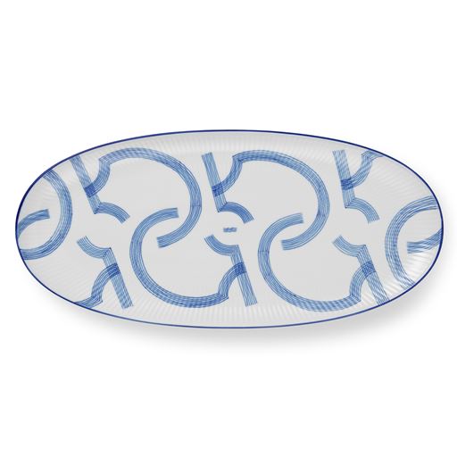 Motif Ovalt Fad, Blue/White, 17x37 cm