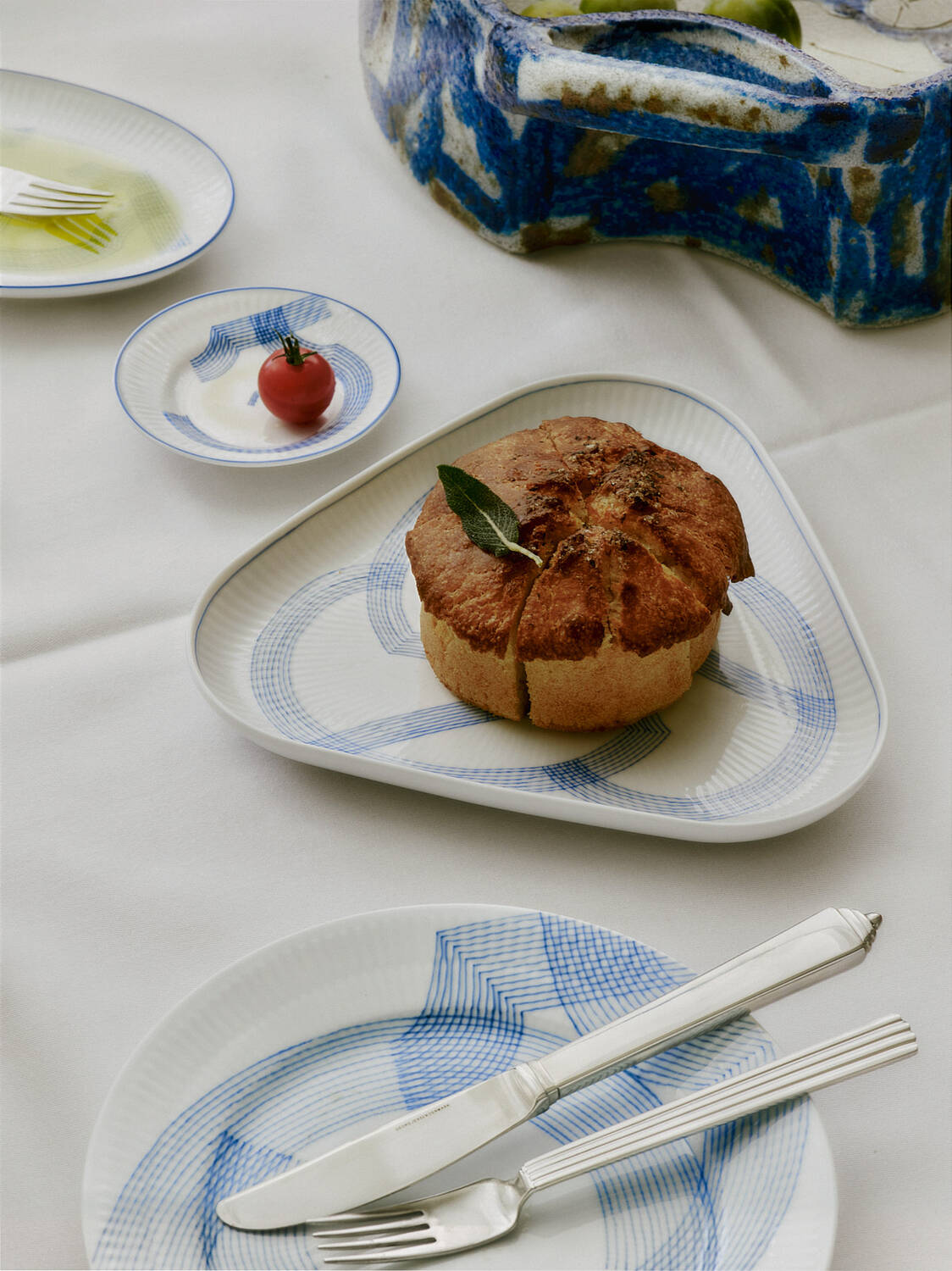 Motif Trekantet Fad, Blue/White, 22x23 cm