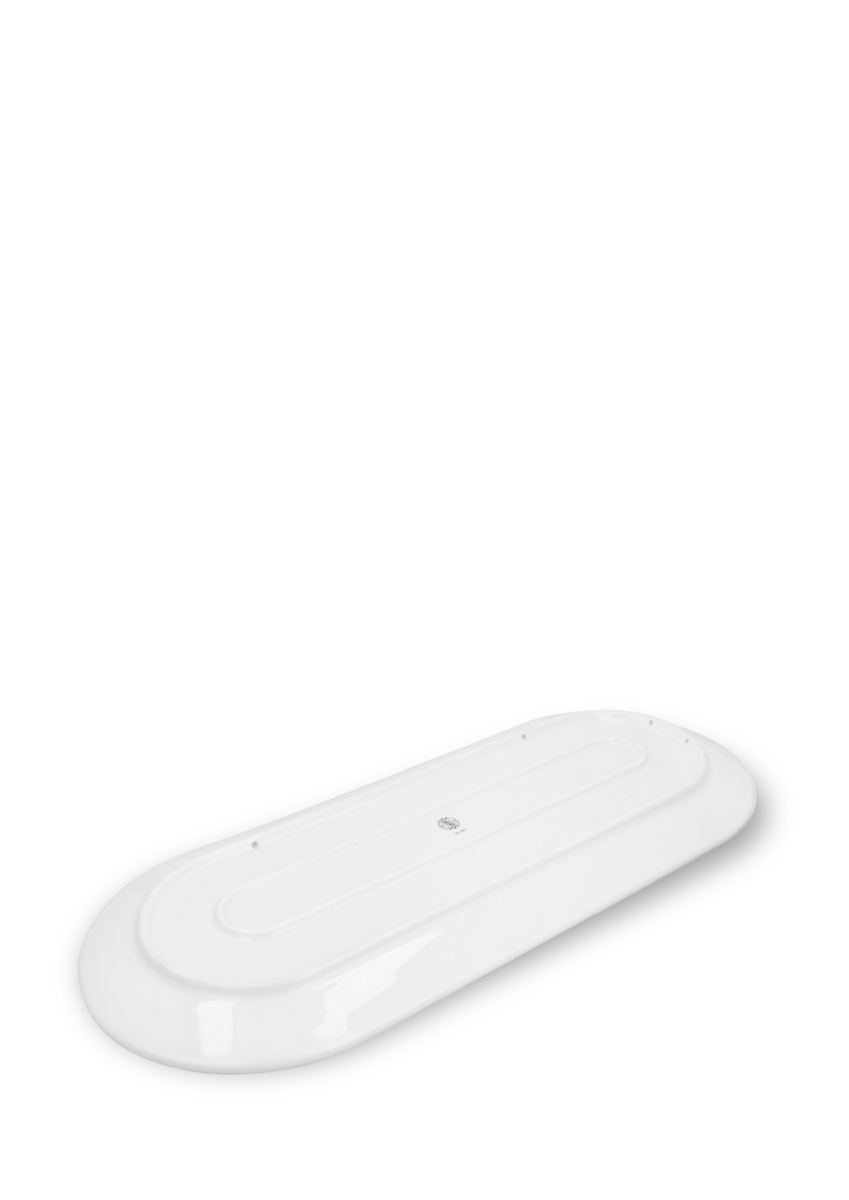 Udover at være ideel til servering af mad, kan Tura serveringsfadet også anvendes som en dekorativ base for stearinlys eller andre dekorative elementer, hvilket gør det til et alsidigt valg for både daglig brug og festlige lejligheder. Den blanke glasur giver fadet en ekstra glans, samtidig med at det er praktisk, da det tåler opvaskemaskine og dermed er nemt at rengøre. Med en størrelse på 48 x 20 x 2,5 cm passer det perfekt til både små og store anretninger. Dette serveringsfad fra Lyngby Porcelæn er den perfekte kombination af funktionalitet og æstetik.