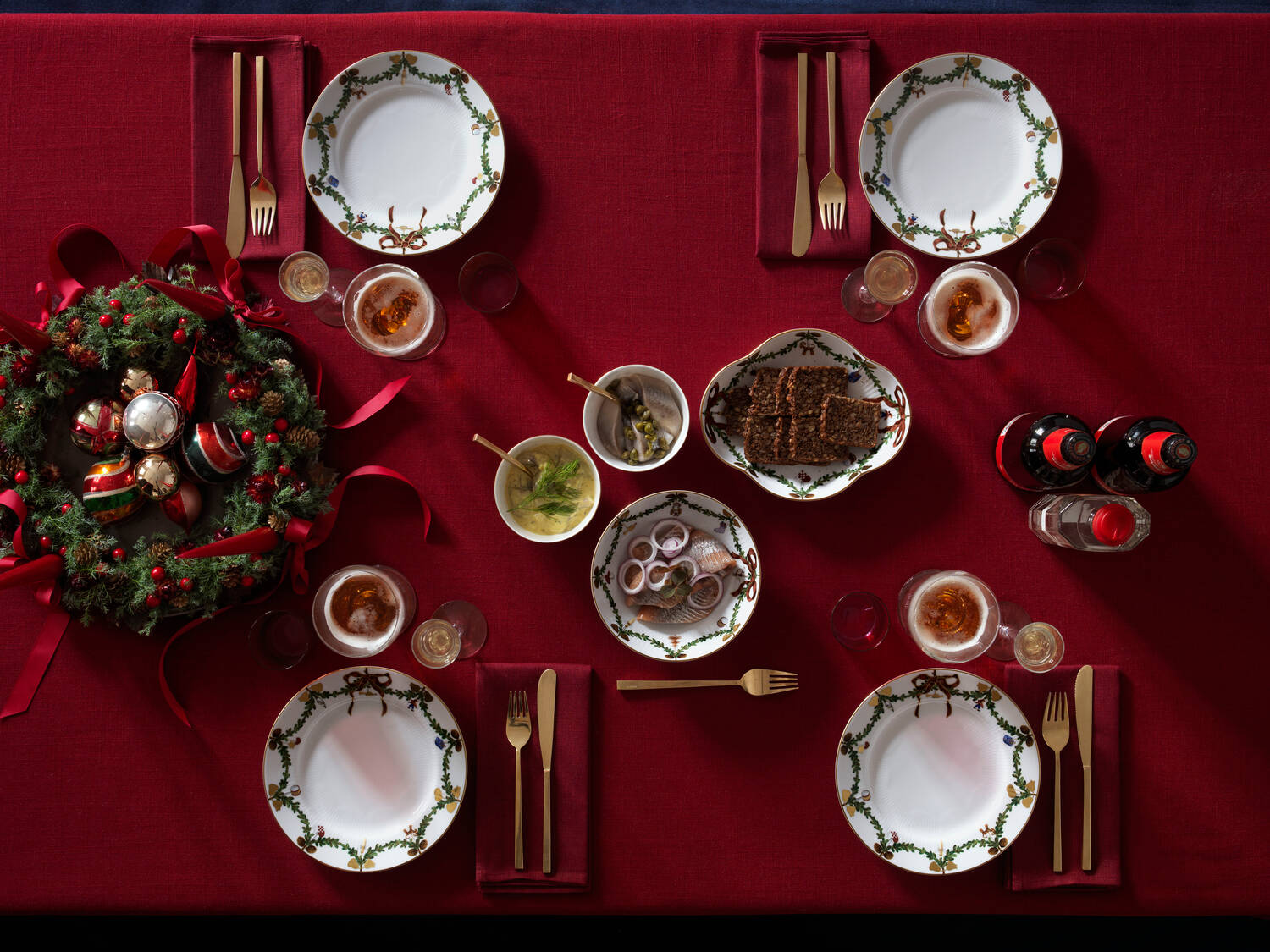 - Granguirlande og juleornamenter langs kanten