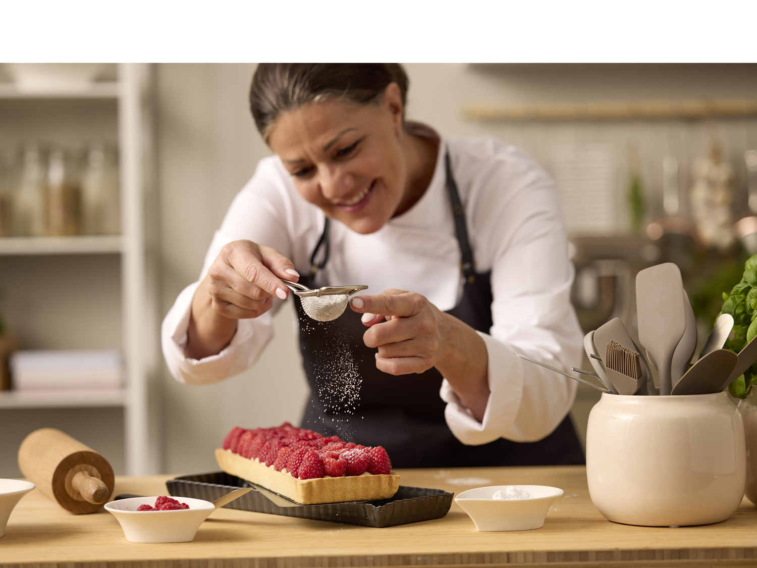 - Anbefales at bruge redskaber af træ, silikone eller plastik
