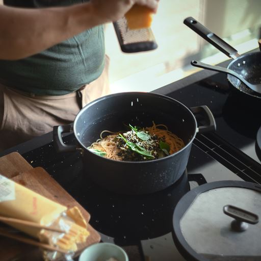 - Kan anvendes på alle komfurtyper (inkl. induktion)