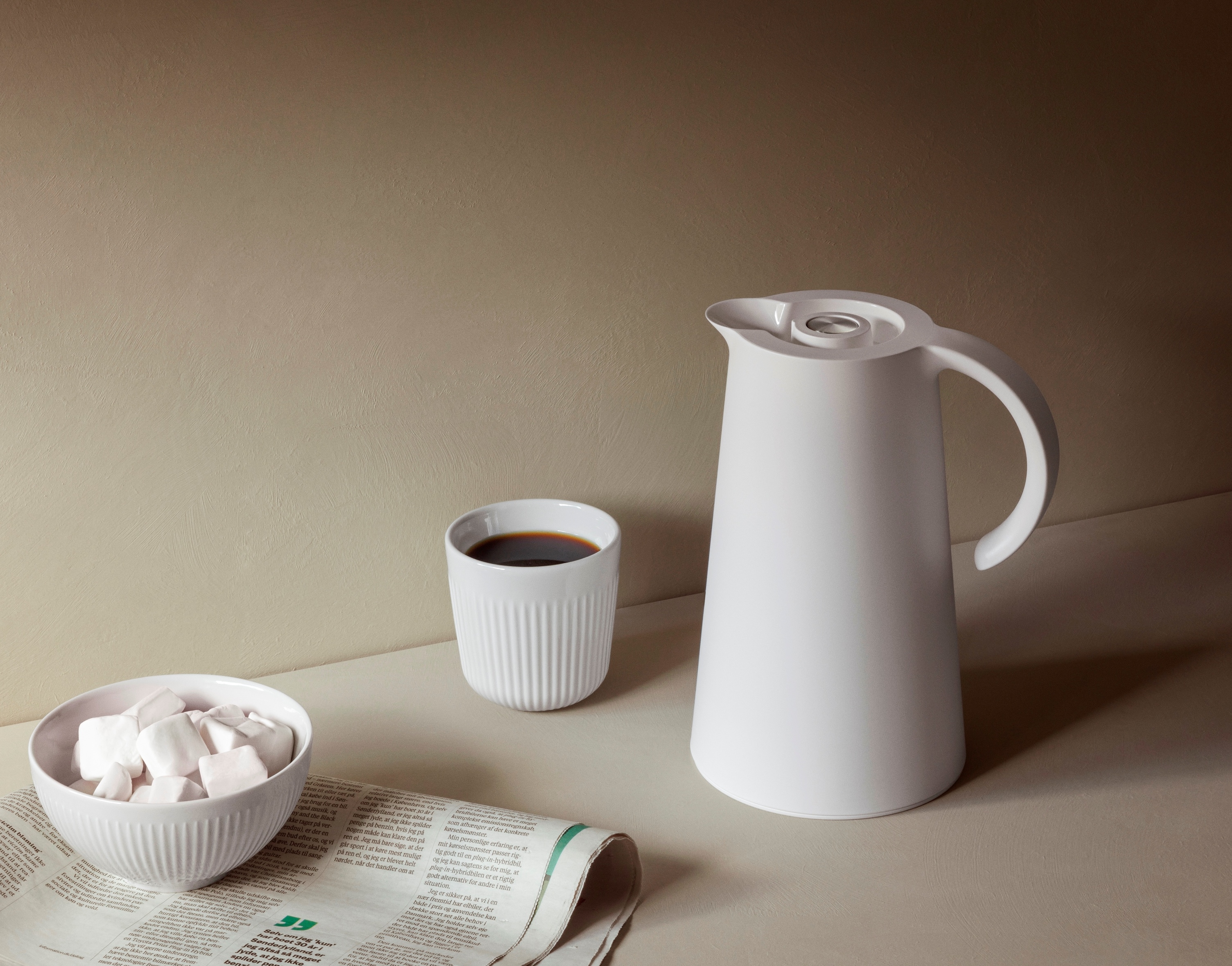 Rise termokande fra Eva Solo er et eksempel på elegant og funktionelt design, som kombinerer stil og funktionalitet. Denne termokande er skabt til at gøre din hverdag lettere med sin enkelthed og effektive funktioner. Med en dobbeltvægget vakuumeffekt sikrer denne termokande, at dine drikkevarer holdes varme i flere timer, hvilket gør den til et ideelt valg til både hjemmebrug og udendørsaktiviteter. En af de bemærkelsesværdige funktioner ved denne termokande er dens praktiske trykknap-funktion, som gør det nemt at hælde op, uden at skulle skrue låget af. Dette er særligt praktisk, når du er på farten eller har hænderne fulde. Kanden leveres desuden med en udskiftelig glasindsats, hvilket giver mulighed for nem vedligeholdelse og forlængelse af kandens levetid. Med en kapacitet på 1 liter passer den perfekt til at servere kaffe eller te til flere personer. Med dimensionerne D: 18 x B: 14 x H: 23,5 cm er den kompakt nok til nem opbevaring, samtidig med at den tilbyder tilstrækkelig volumen til dine behov. Eva Solo Rise termokande er den perfekte kombination af design og funktionalitet.