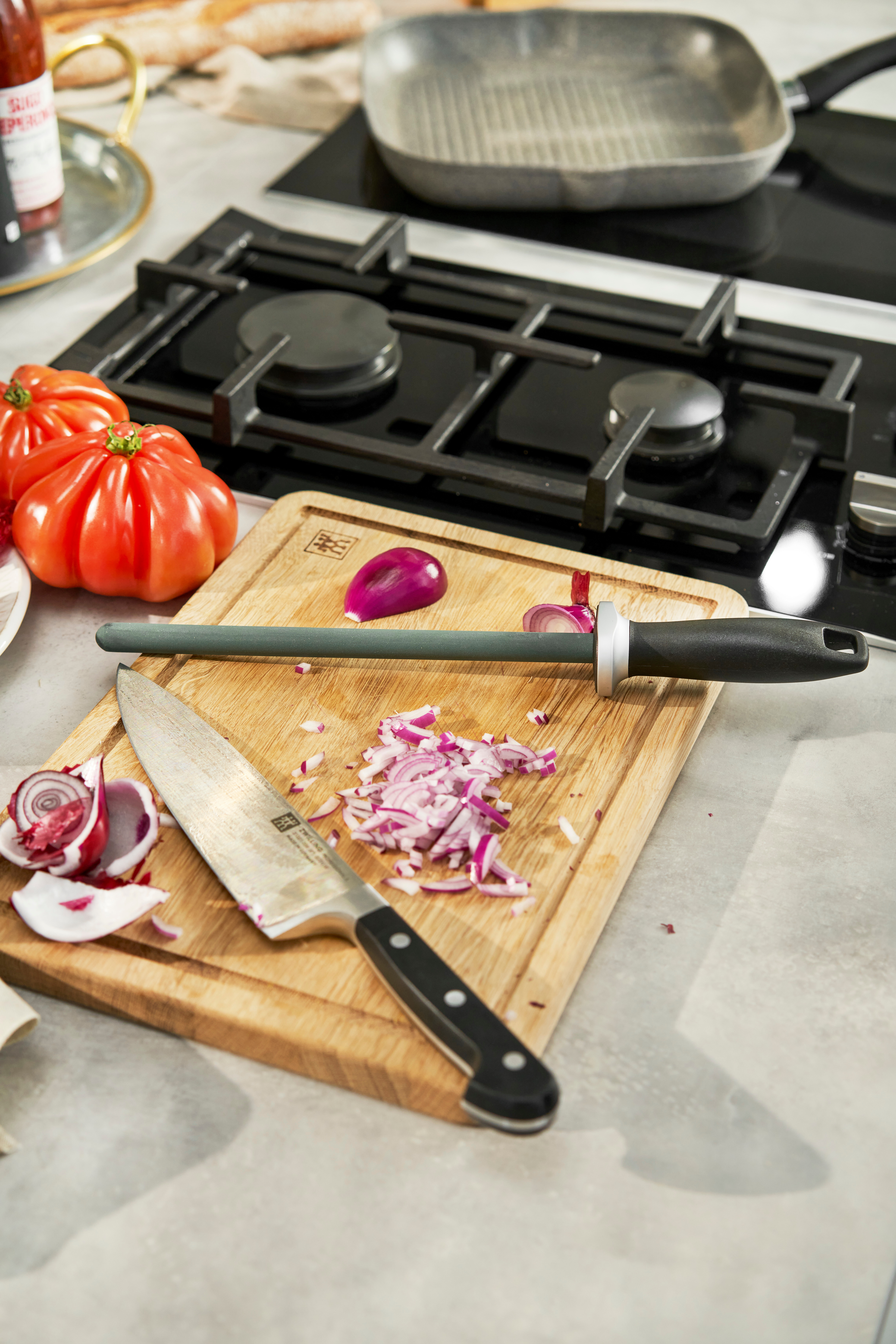 Zwilling strygestål er et uundværligt tilbehør til dine knive, der sikrer optimal vedligeholdelse af skarpheden. Med en keramisk slibesten er dette strygestål designet til nænsomt at bevare og forny skæreevnen på både kniv- og sakseblade. Den keramiske overflade sikrer en jævn og effektiv slibning, der er skånsom mod dine redskaber.