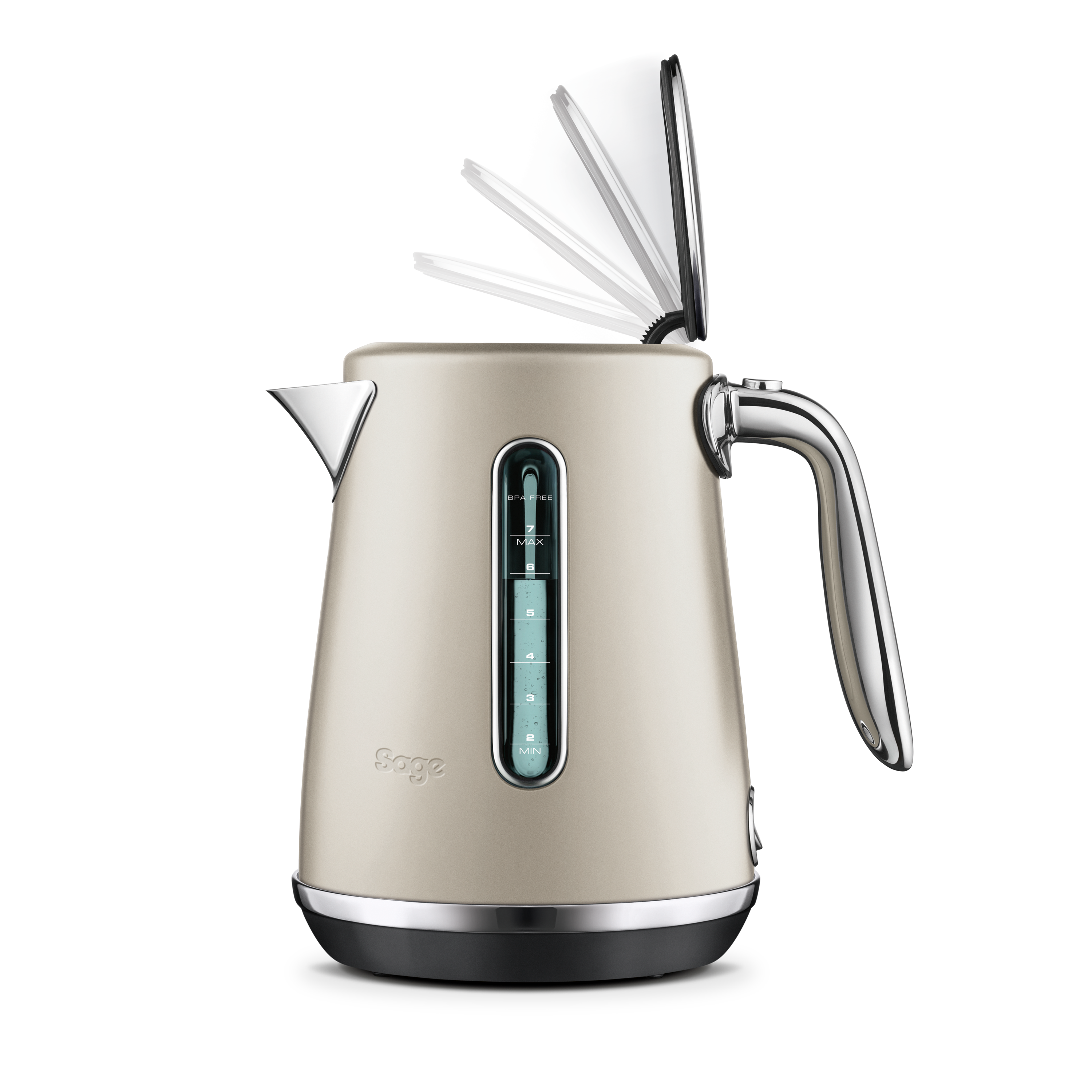The Soft Top Luxe Elkedel fra Sage præsenterer en kombination af stilfuldt design og praktiske funktioner, der gør den til et uundværligt redskab i ethvert køkken. Denne elkedel er udstyret med et innovativt soft open-låg, der langsomt frigiver dampen, hvilket minimerer risikoen for skoldninger og gør kogeoplevelsen mere sikker og behagelig. Det ergonomiske håndtag sikrer et komfortabelt greb, mens du hælder vand op.