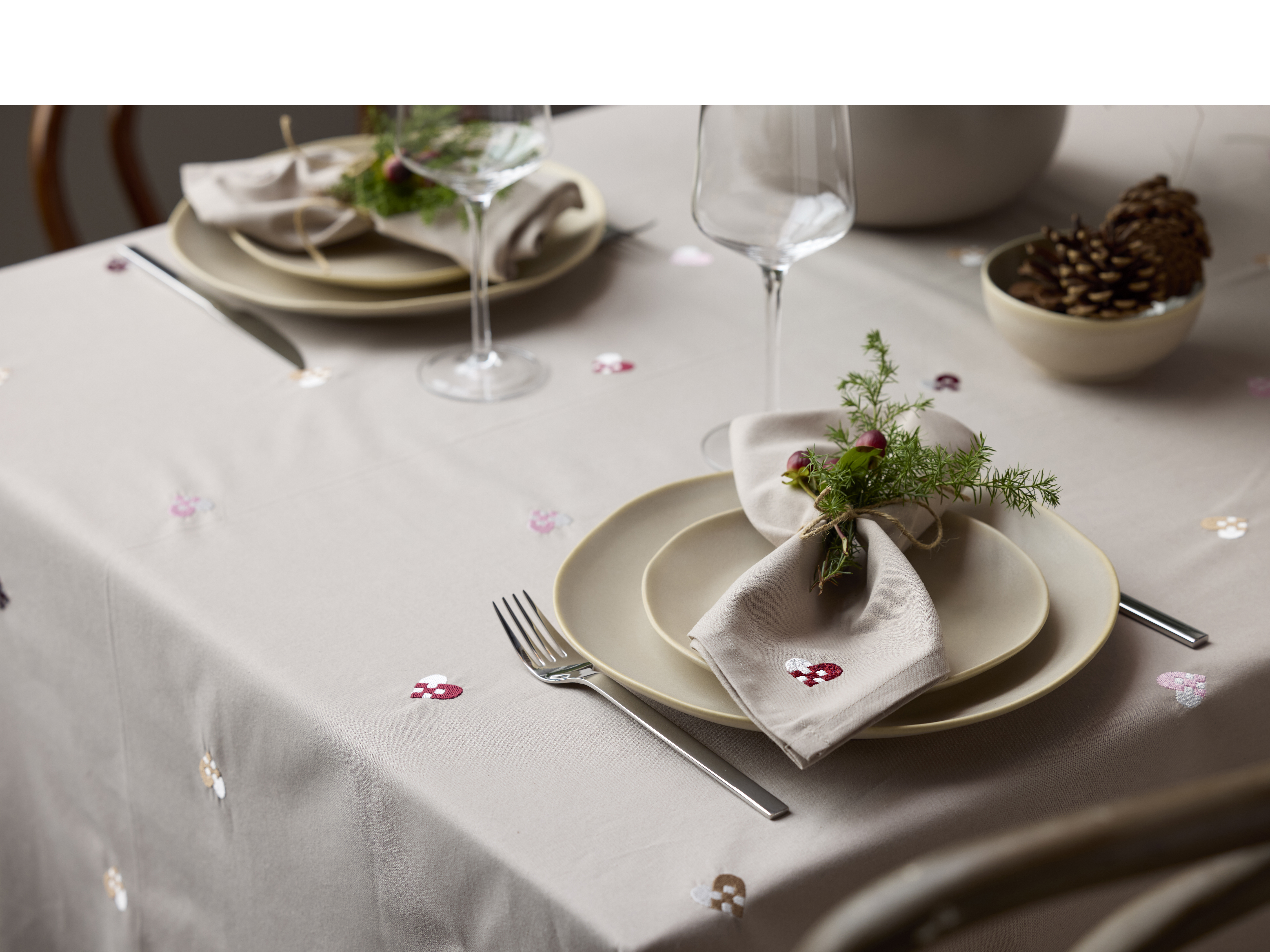 - Broderede flettede julehjerter spredt ud på dugen