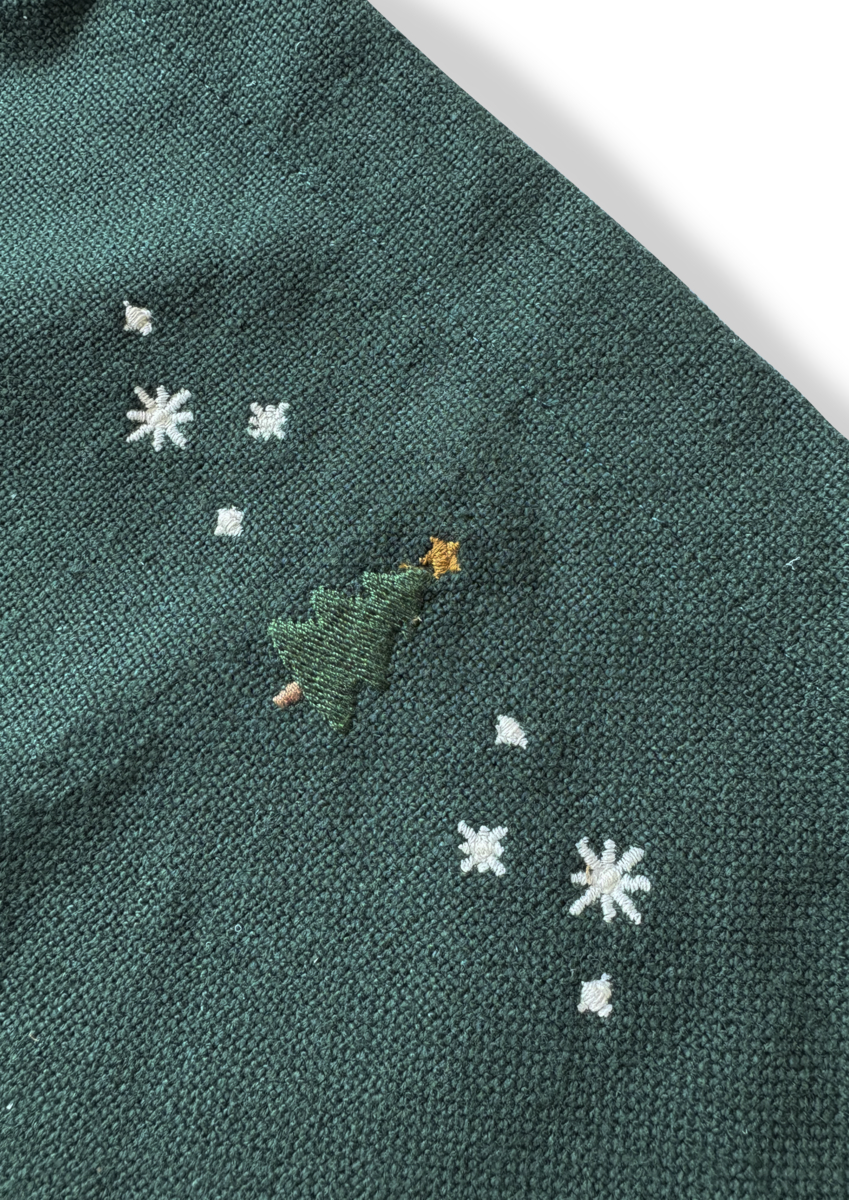 - Broderet juletræ og stjerner foroven