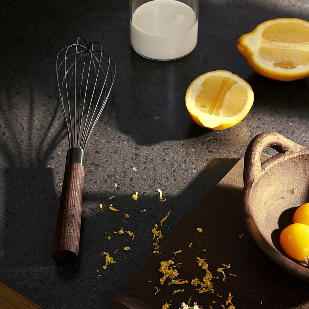 - Lavet i varmebehandlet asketræ og rustfrit stål
