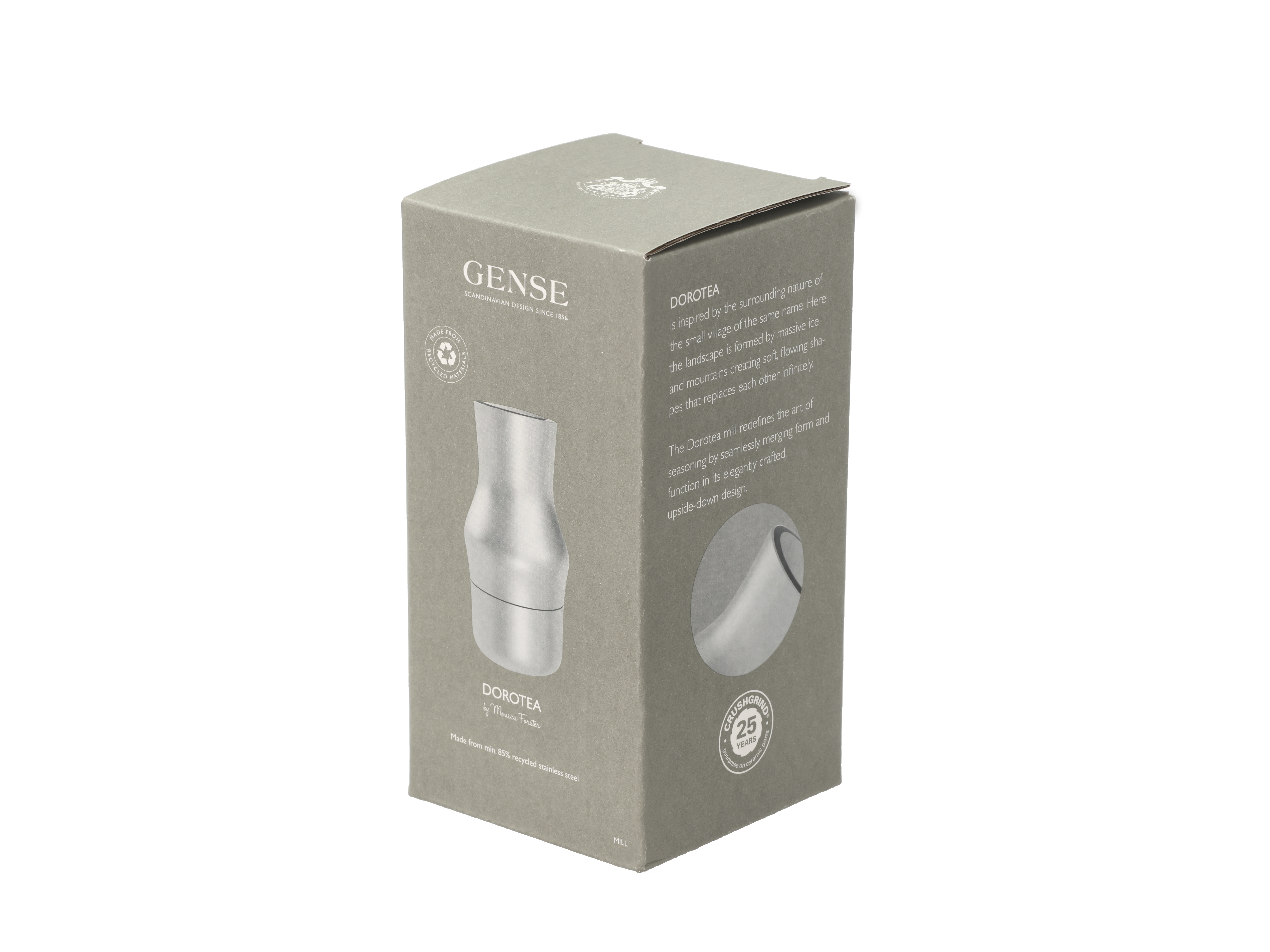 Dorotea Kværn fra Gense er et elegant og praktisk valg til dit køkken. Denne kværn er fremstillet i rustfrit stål, hvilket sikrer holdbarhed og et tidsløst udseende. Med sit minimalistiske og funktionelle design passer kværnen perfekt ind i både moderne og klassiske køkkenindretninger. Den keramiske CrushGrind mekanisme garanterer en ensartet formaling, så du altid opnår det bedste resultat, uanset om du bruger den til salt, peber eller tørrede krydderier.