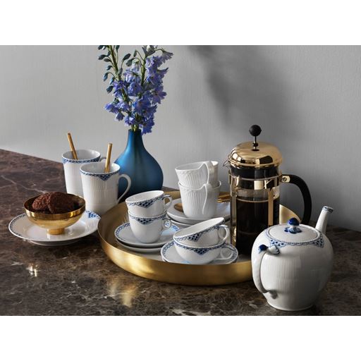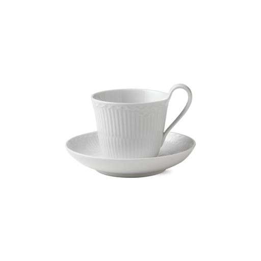 - Hvid halvblonde højhankskop med underkop fra Royal Copenhagen