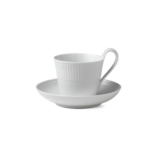 - Hvid Riflet højhankskop med underkop fra Royal Copenhagen