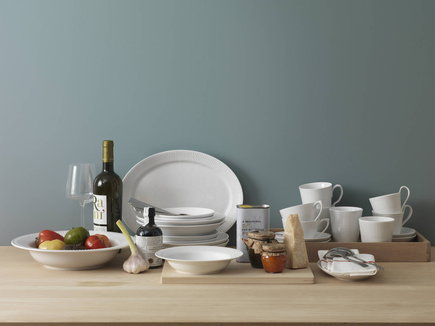 Hvid Riflet Højhankskop Og Underkop, 24 cl
