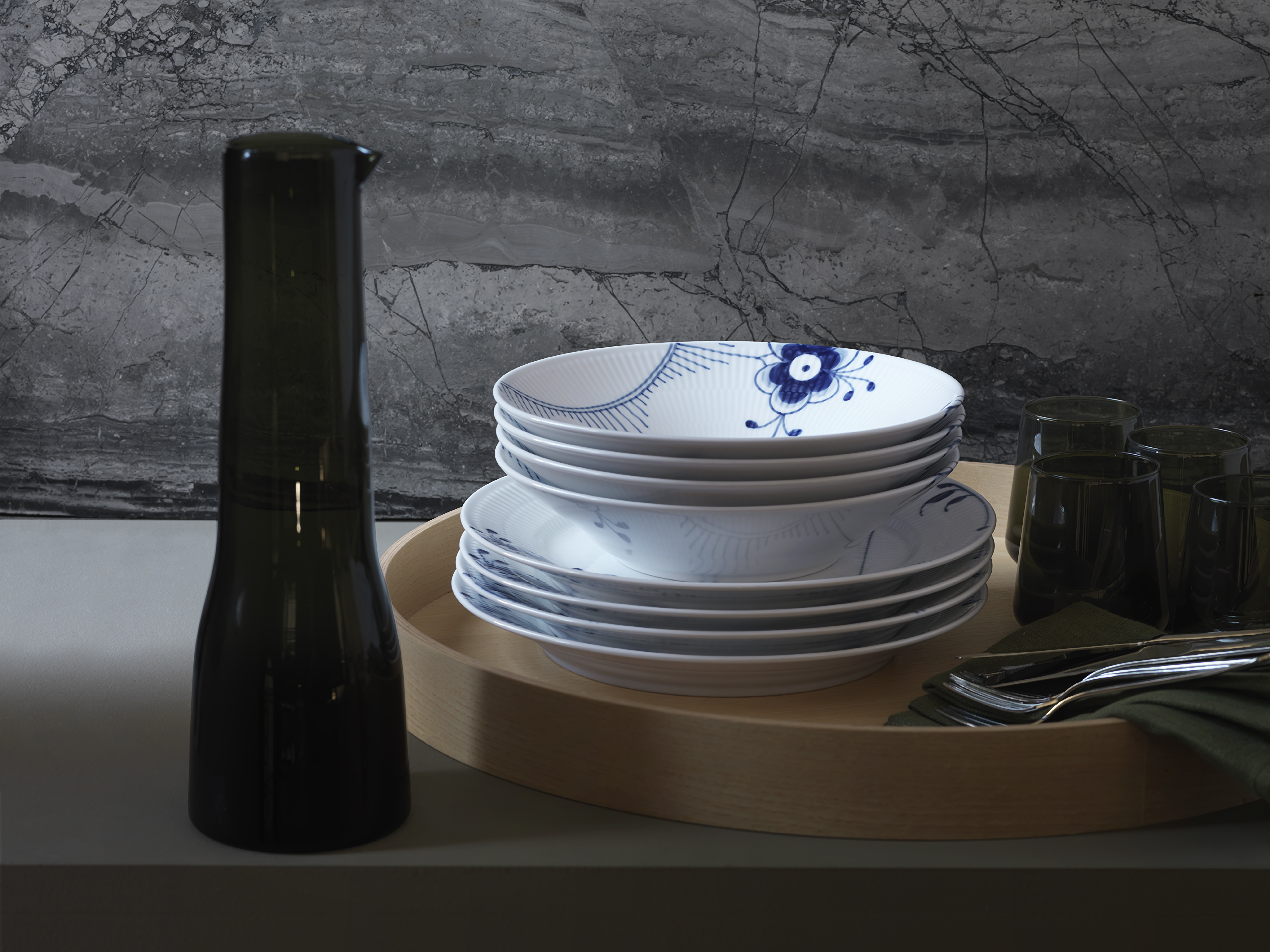 - Blå Mega Riflet dyb tallerken fra Royal Copenhagen