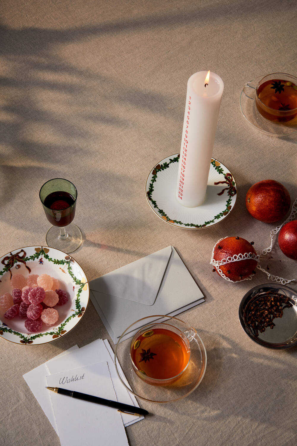 - Julemotiver og granguirlander langs kanten