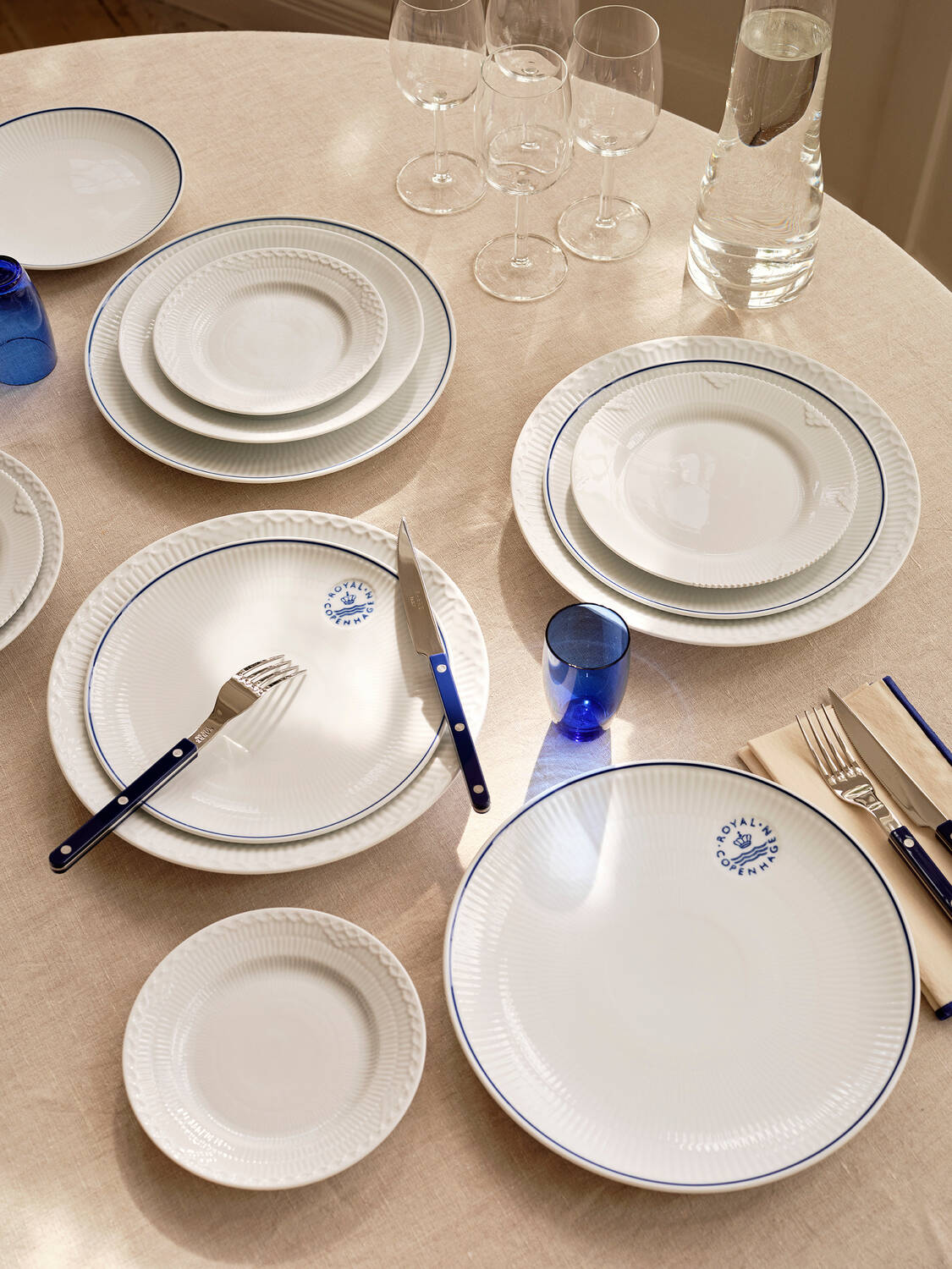 Udtrykket er enkelt, linjerne elegante og formen klassisk. Hvid Riflet udstråler en speciel moderne renhed, som skandinavisk design er berømt for i hele verden. Hvid Riflet giver borddækningen et rent og stilfuldt udtryk, og stellet kan bruges både til hverdag og fest. I 2004 blev Hvid Riflet introduceret, men selve stellets grundform er flere generationer gammelt. Hvid Riflet er egentlig grundformen bag flere af de andre stel - bl.a. Musselmalet Riflet og Musselmalet Mega, som stammer helt tilbage fra det 19. århundrede. Den riflede form stammer oprindeligt fra det klassiske Musselmalet Riflet, som fik sit navn efter muslingens riflede skal. Den dag i dag bliver en del af stellet stadig fremstillet ved håndkraft, blandt andet støbningen, påsætning af hanke og glasering. Hvid Riflet er i øvrigt skabt efter de samme gamle forfinede håndværkstraditioner, som startede for mere end 200 år siden, da Royal Copenhagen blev grundlagt. Designeren er Arnold Krog.