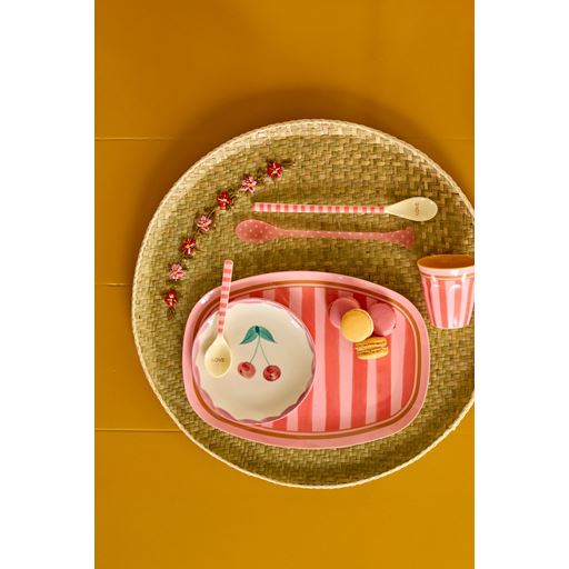 Organic Stripes Rektangulær Middagstallerken, Pink/Red, 22x30 cm