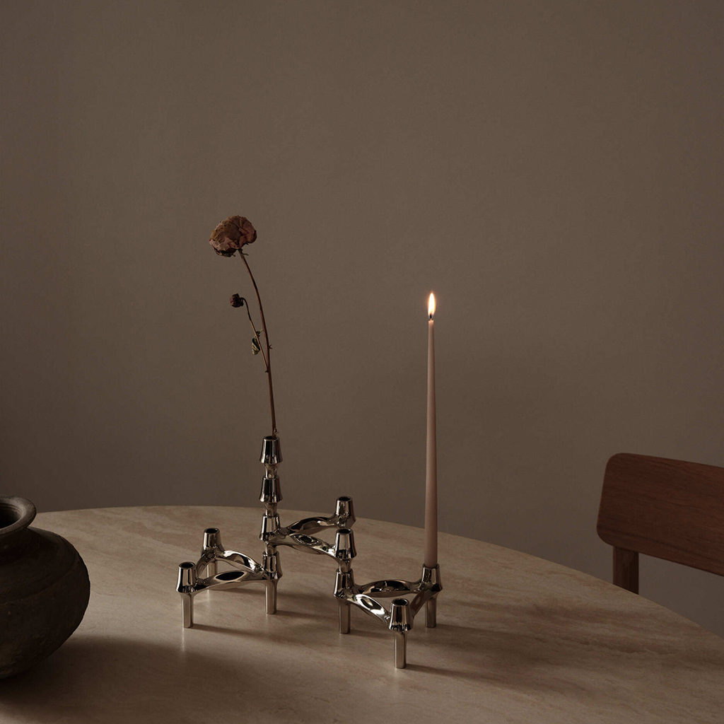BMF Lysestagen fra Stoff Nagel er et ikonisk design fra 1960'erne, der stadig fremstår moderne med sin skulpturelle form. Den trebenede lysestage er ikke kun et funktionelt objekt, men også et smukt, organisk kunstværk, der kan give et æstetisk løft til ethvert rum. Denne lysestage er designet til at passe til kertelys, hvilket gør den perfekt til skabelse af en hyggelig og varm atmosfære i hjemmet.