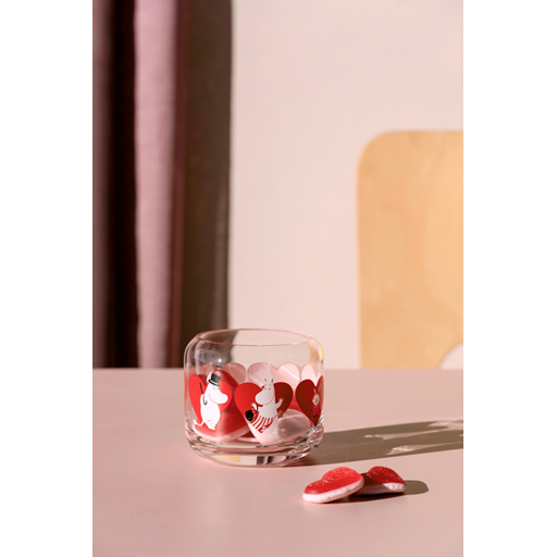- Dekoreret med hjerter og mumitrolde