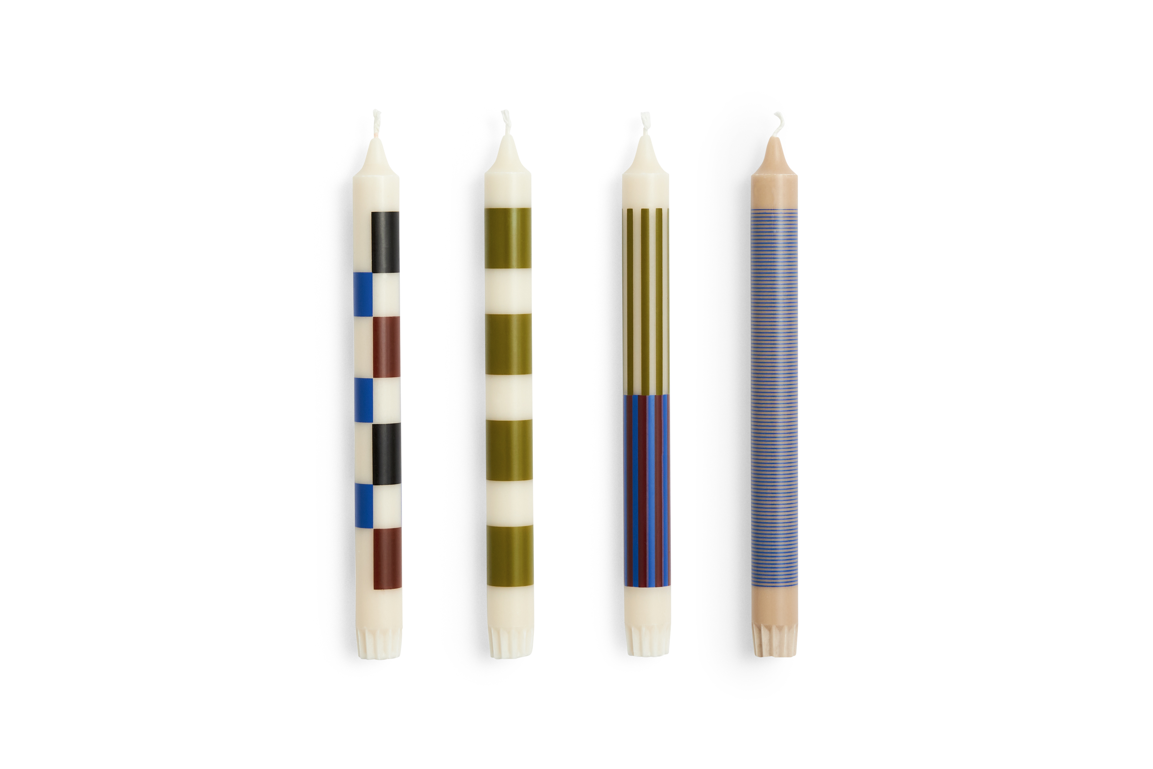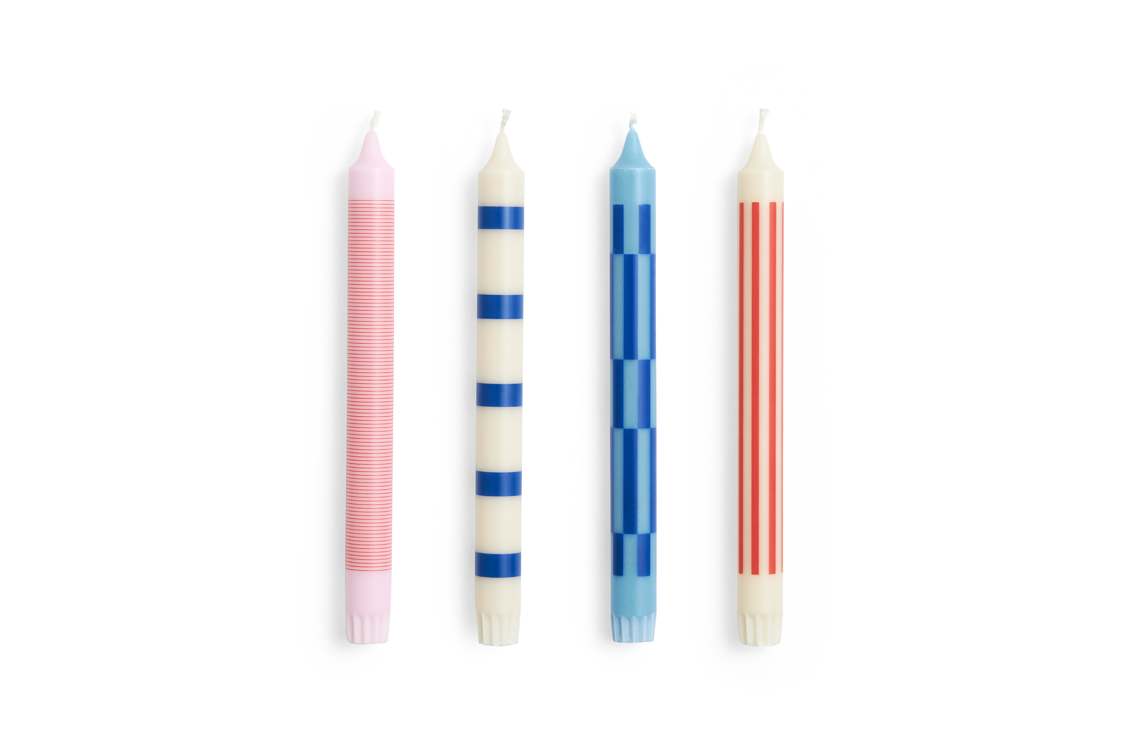 Pattern 4-pak Lys fra HAY er en elegant tilføjelse til ethvert hjem, der ønsker at kombinere funktionalitet med æstetik. Disse klassiske stearinlys er dekoreret med forskellige mønstre, som tilføjer en stilfuld dimension til din indretning. Hver pakke indeholder fire forskellige lys, hvilket giver variation og mulighed for at skabe en unik atmosfære i ethvert rum.