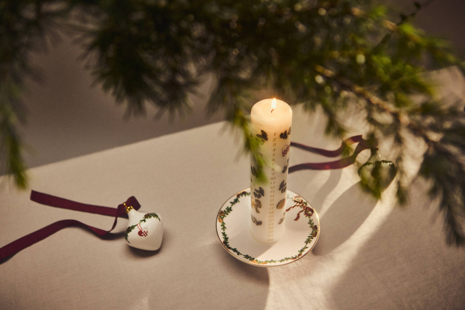 - Dekoreret med granguirlande og julepynt