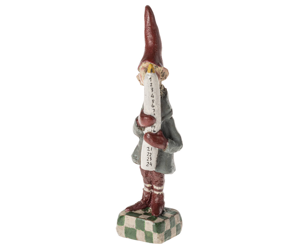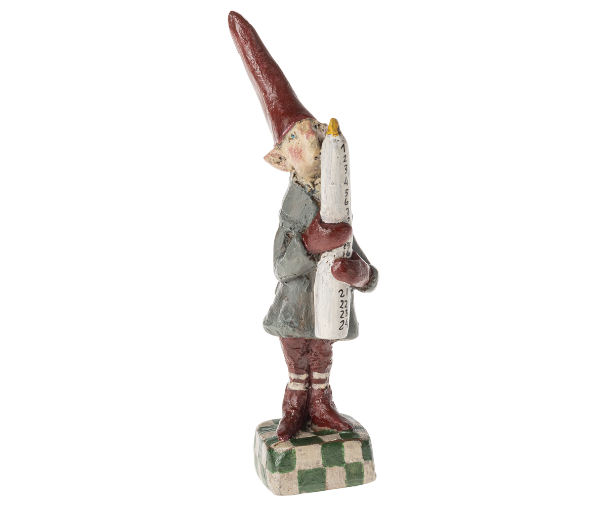 Nissen står med et stort kalenderlys, hvilket gør den ikke bare dekorativ, men også praktisk til at tælle dagene op til jul. På grund af den håndlavede natur af produktet kan små variationer forekomme, hvilket betyder, at hver nisse er unik med sin egen charme. Denne Maileg nisse er perfekt til at bringe traditionel juleånd ind i dit hjem og skabe en varm og indbydende atmosfære i juletiden. Uanset om den står på reolen, bordet eller pejsen, vil Petit Noël No. 23 tilføje et strejf af magi til din juleudsmykning.