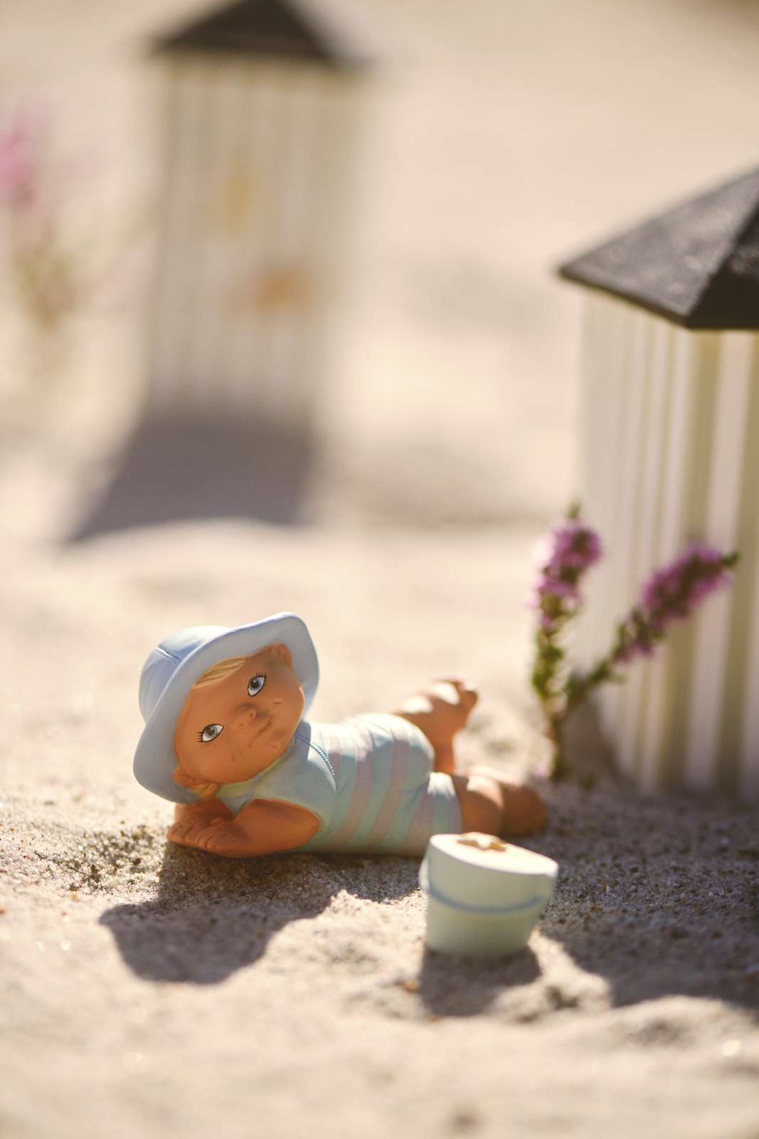 - Iklædt badetøj og solhat