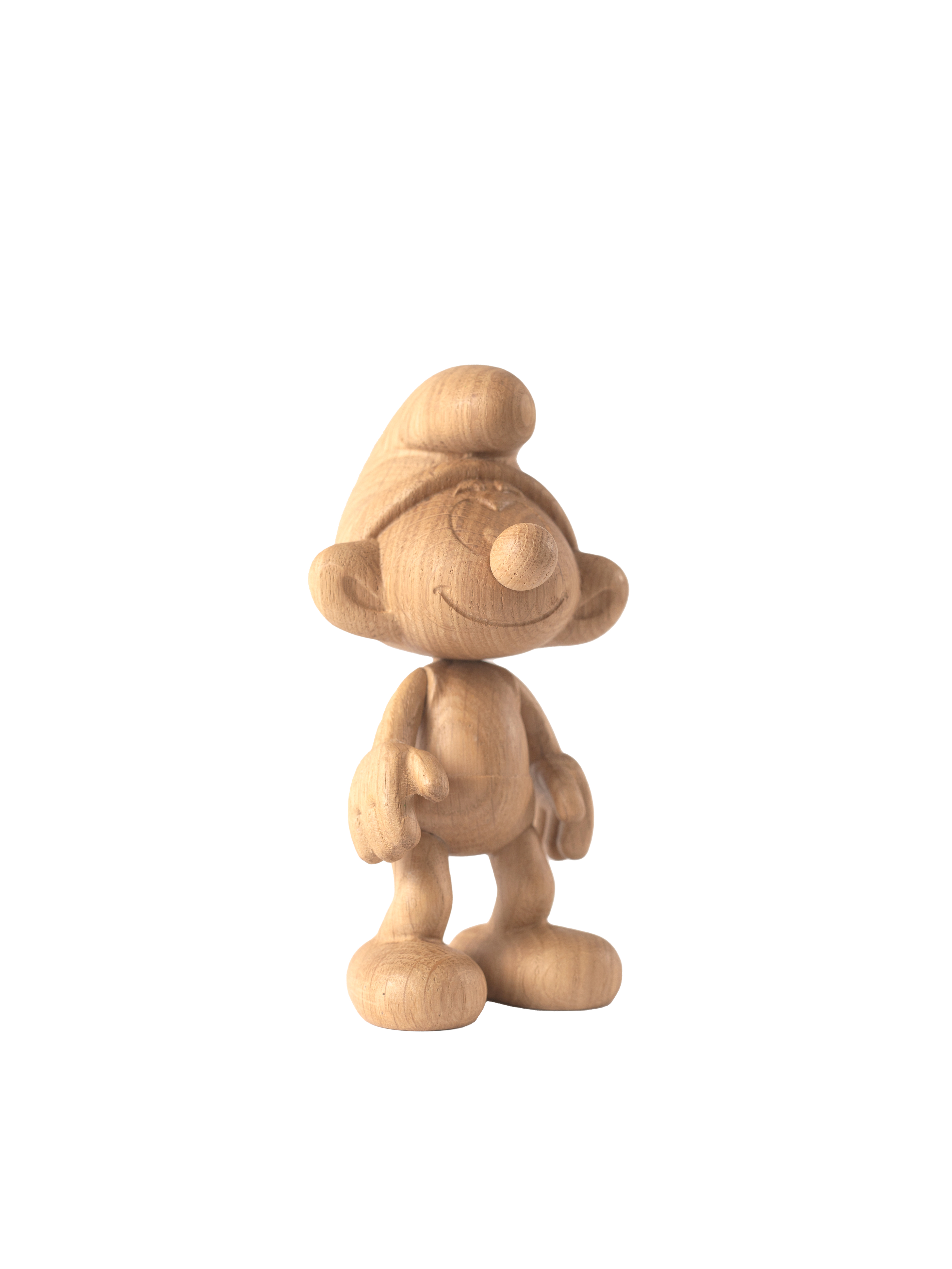Smølfen er fremstillet i elegant eg, som giver en tidløs æstetik og en naturlig varme til din boligindretning. Med dens kompakte mål på 15 cm i højden og 7 cm i bredden passer den perfekt til små hylder eller bordplader, hvor den kan stå som en diskret, men opmærksomhedskrævende dekoration. Den lille størrelse gør det let at integrere Smølfen i både store og små rum uden at optage for meget plads. Boyhoods Smølf er således en ideel gaveide til både samlere og dem, der sætter pris på klassisk design med et moderne twist.