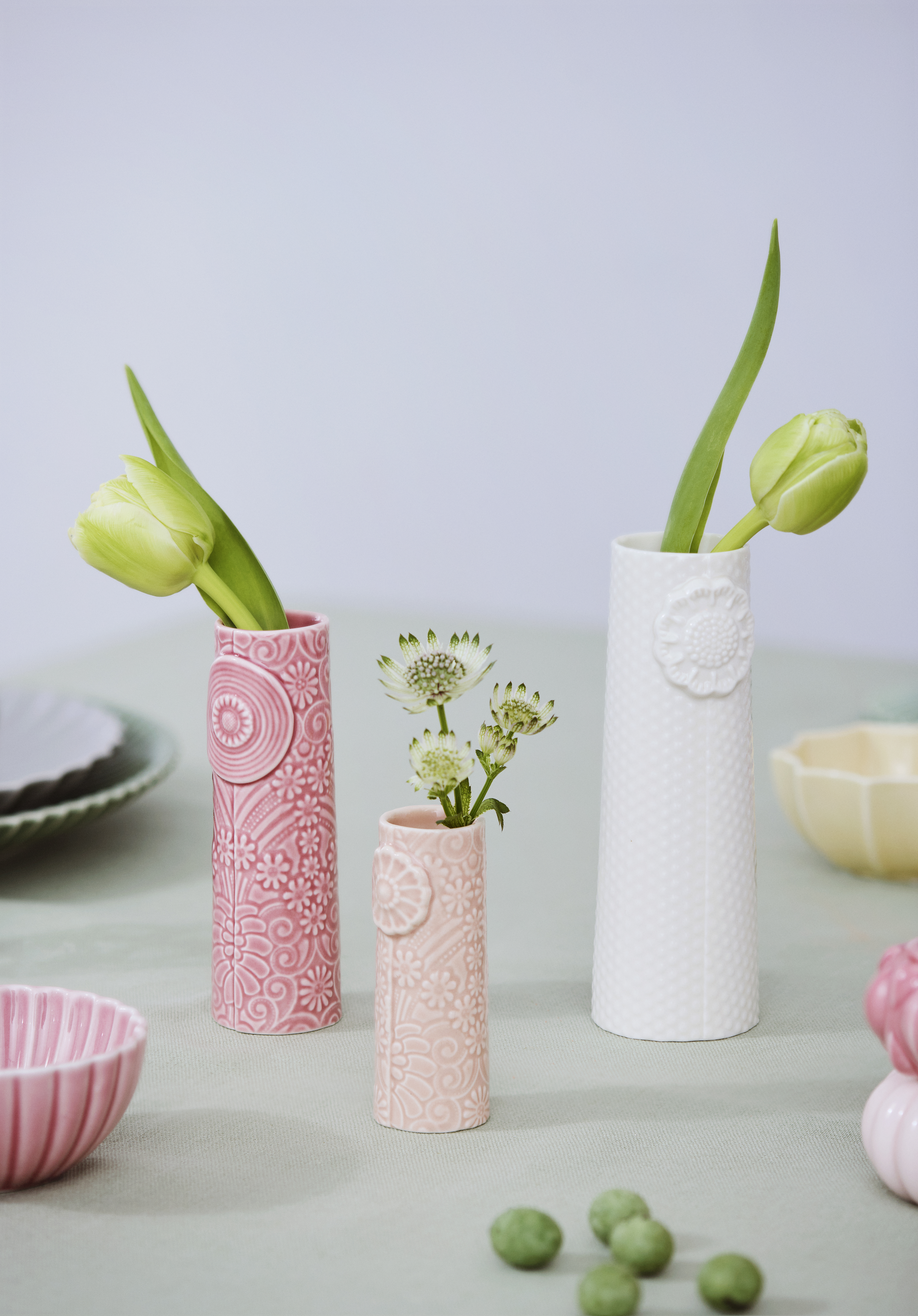 Pipanella Flock 3-pak Vasesæt fra Dottir er det perfekte valg for dem, der ønsker at tilføje et strejf af elegance og unikke detaljer til deres hjem. Dette smukke sæt indeholder tre forskellige vaser, hver med deres egen unikke struktur og mønster, der skaber en harmonisk, men stadig varieret dekoration. Vaserne er lavet i keramik, hvilket giver dem en solid og holdbar kvalitet, mens deres unikke design sikrer, at de skiller sig ud i enhver indretning.