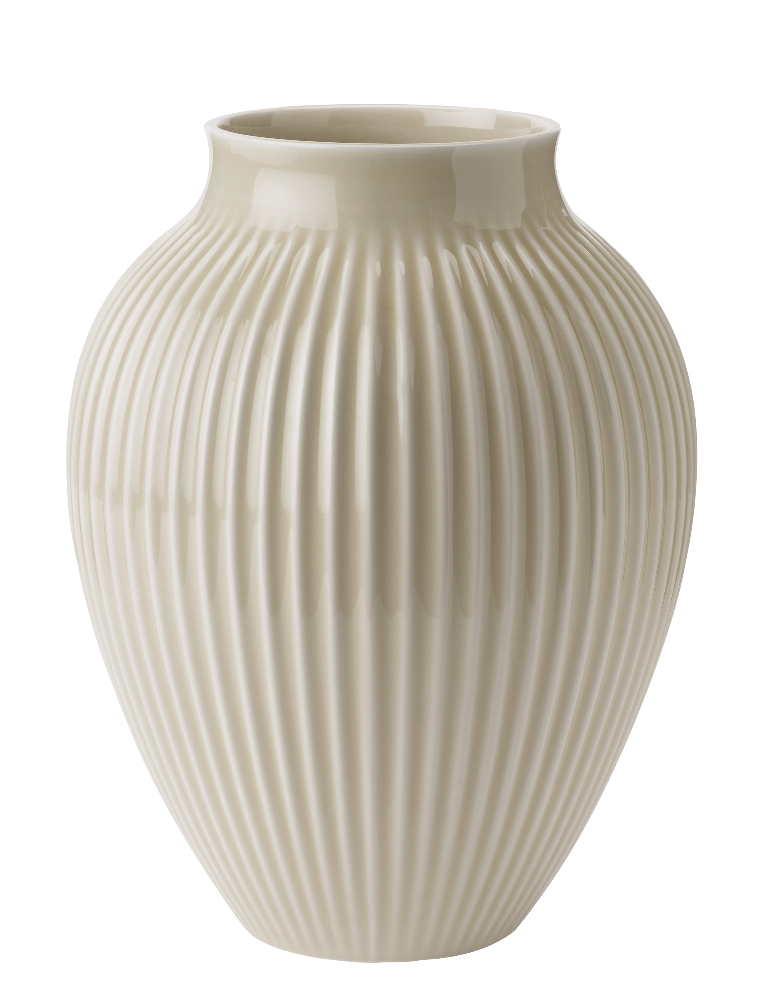 Riflet Vase fra Knabstrup er et smukt eksempel på, hvordan funktion møder æstetik. Denne vase er fremstillet i keramik og er kendetegnet ved sit riflede design, der pryder ydersiden. Dette giver vasen en unik tekstur og tilføjer en elegant dimension til ethvert rum. Med sit ensfarvede design og klassiske form passer den perfekt ind i både moderne og traditionelle indretninger.