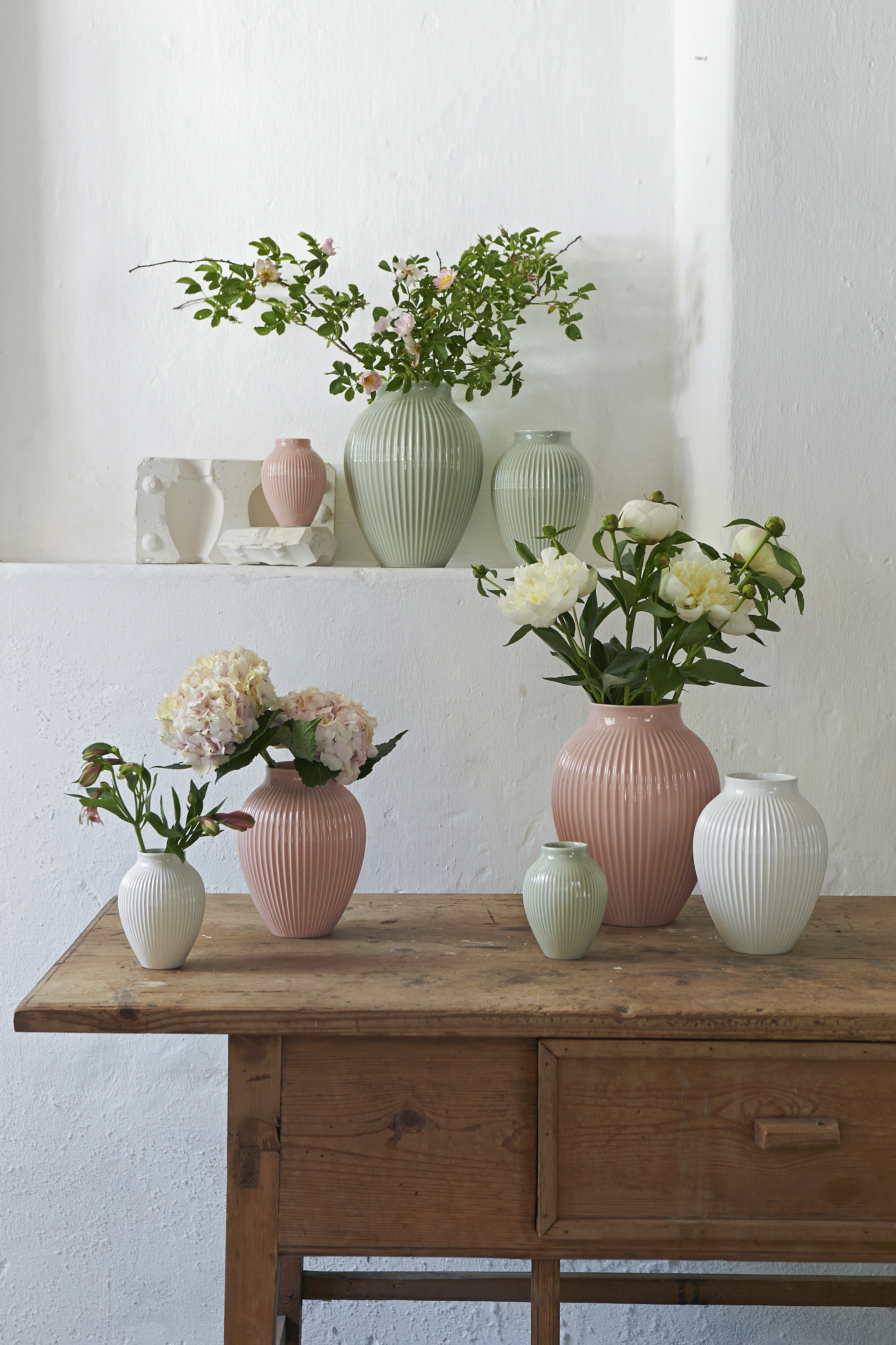 Riflet Vase fra Knabstrup er et fremragende eksempel på, hvordan enkelthed og elegance kan smelte sammen i en smuk dekoration til dit hjem. Dens riflede design på ydersiden tilføjer en fin tekstur, der gør vasen til et blikfang i ethvert rum. Lavet af kvalitetskeramik, sikrer denne vase både holdbarhed og et luksuriøst udseende.