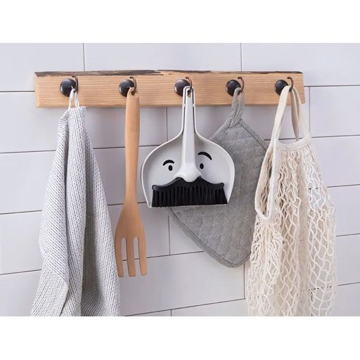 - Designet som et ansigt, hvor kosten er overskægget