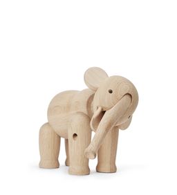 Kay Bojesen elefant blev designet i 1953 og er i dag en af de mest elskede figurer fra den berømte danske designer. Med sit charmerende udtryk og sit tidløse formsprog er elefanten blevet et symbol på dansk designtradition. En figur udstråler ro og nænsomhed og som både børn og voksne holder af. Figurerne er håndlavet i træ og med sit eget charmerende udtryk, der med sin bevægelige dele kan personliggøres endnu mere.