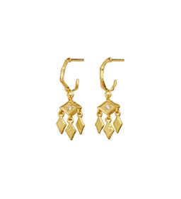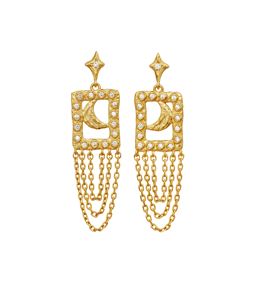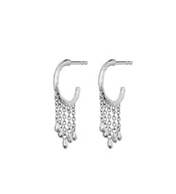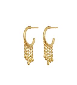 Esta øreringene har et mere enkelt og delikat design, hvor fine vedhæng og elegante linjer skaber et let og sofistikeret look.