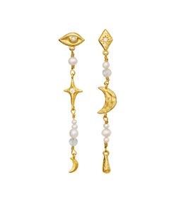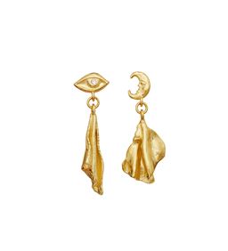 Astrea øreringene er en af de mest populære modeller fra Maanesten. Designet forener det feminine og det spirituelle med fine detaljer, hvor sol og måne indgår som en del af det asymmetriske udtryk – den ene ørering med en sol, den anden med en måne.