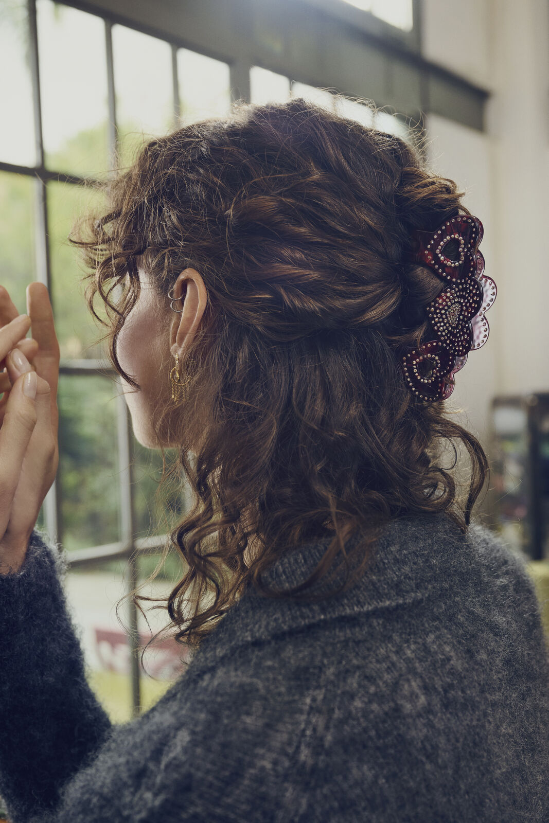 Esca Hårklemme er dekoreret med funklende rhinsten, som tilfører et glitrende element til dit look. Den unikke hjerteformede design giver en feminin og romantisk nuance, der gør den velegnet til både hverdagsbrug og specielle lejligheder. Fremstillet i holdbart acetat, sikrer denne hårklemme både stil og funktionalitet. Acetatmaterialet giver en glat finish, der er skånsom mod håret og samtidig sikrer et solidt greb.