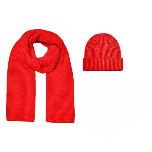 Gila Rib Beanie Skarf Gaveæske, Fiery Red