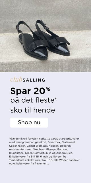 Også i vores kategori for sko, finder du et stort udvalg at både sneakers, støvler og sandaler til både hverdag, fest og praktisk brug. Shop for eksempel de nyeste sneakers fra New Balance og Woden, som tilføjer både stil og komfort til hverdagen. En flot støvle er også altid et godt valg, og på Salling.dk finder du både de helt klassiske chelseastøvler, som aldrig går af mode, samt smarte chunky støvler fx fra Angulus eller Dr. Martens, som er super cool til især efterår og vinter. Skal det være lidt mere elegant, kan du også shoppe støvler med lidt hæl, som kan løfte hverdagsoutfittet eller bruges til fest. Til sommer og forår er et par sandaler absolut uundværlige. Det kan for eksempel være de populære Arizona sandaler fra Birkenstock, eller et par stilede sorte sandaler fra Pavement. Til sommerens fester har vi selvfølgelig også højhælede sandaler i et væld af forskellige styles og farver.