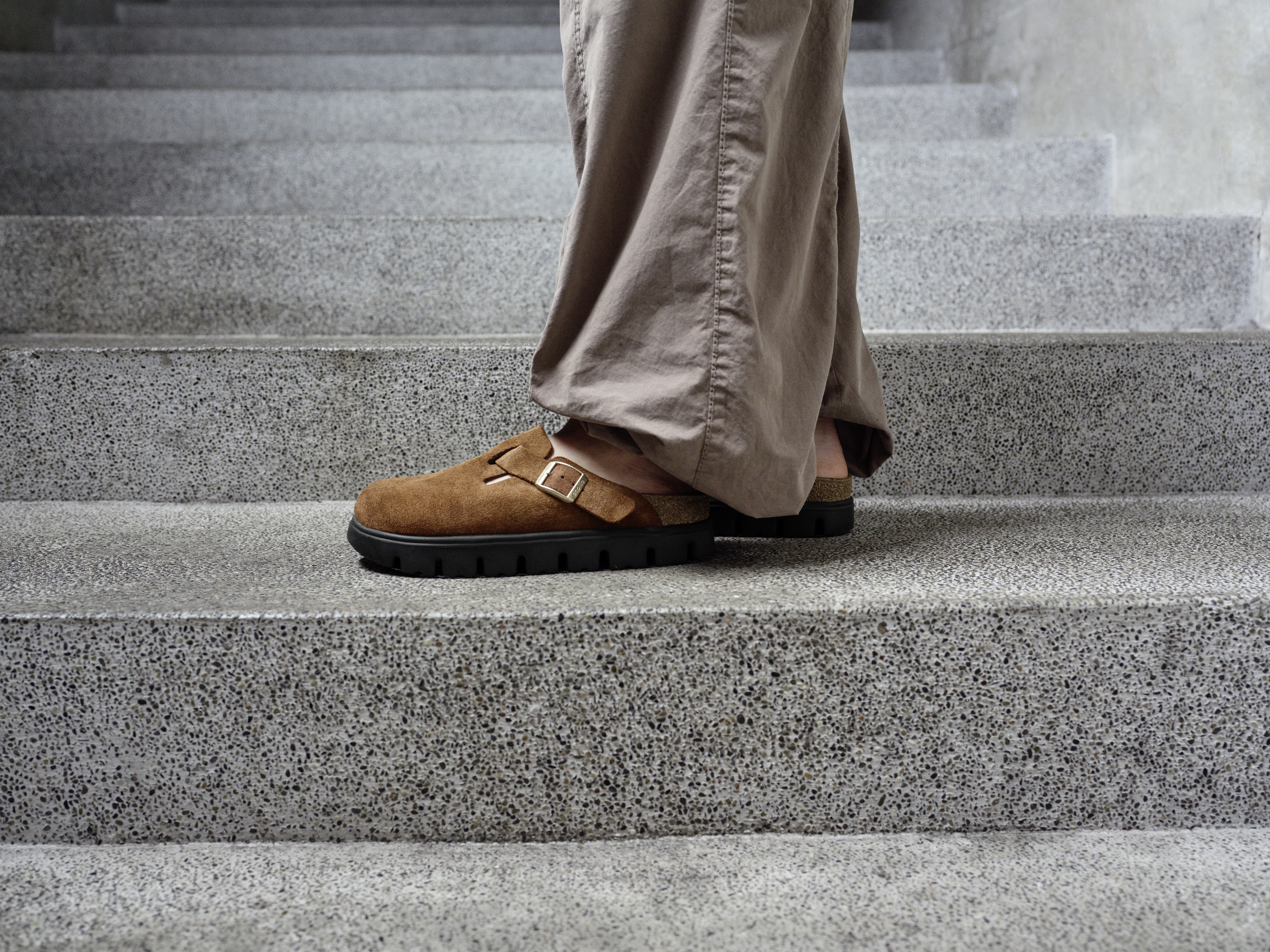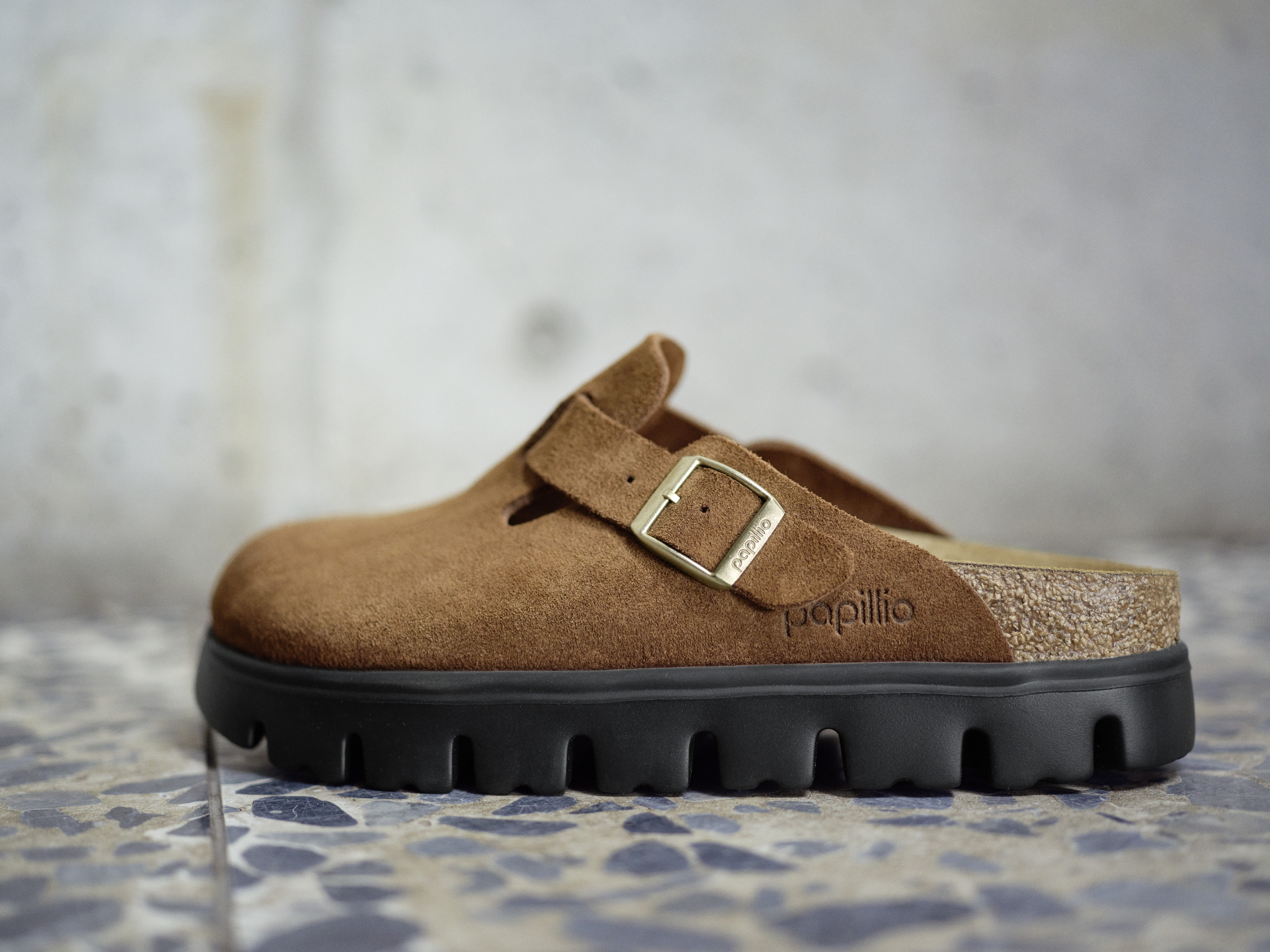Et moderne spænde på siden tilføjer et ekstra stilfuldt touch, mens designet med en chunky sål ikke kun giver en trendy æstetik, men også ekstra stabilitet og støtte til foden. Clogsene har en smal bredde, der passer godt til dem med smallere fødder, og sikrer en tæt og behagelig pasform. Materialet i ruskind giver skoen et luksuriøst og blødt udseende, der nemt kan kombineres med både afslappet og mere formelt tøj. Uanset anledning, vil Boston Chunky Clogs fra Birkenstock give dig både stil og komfort.