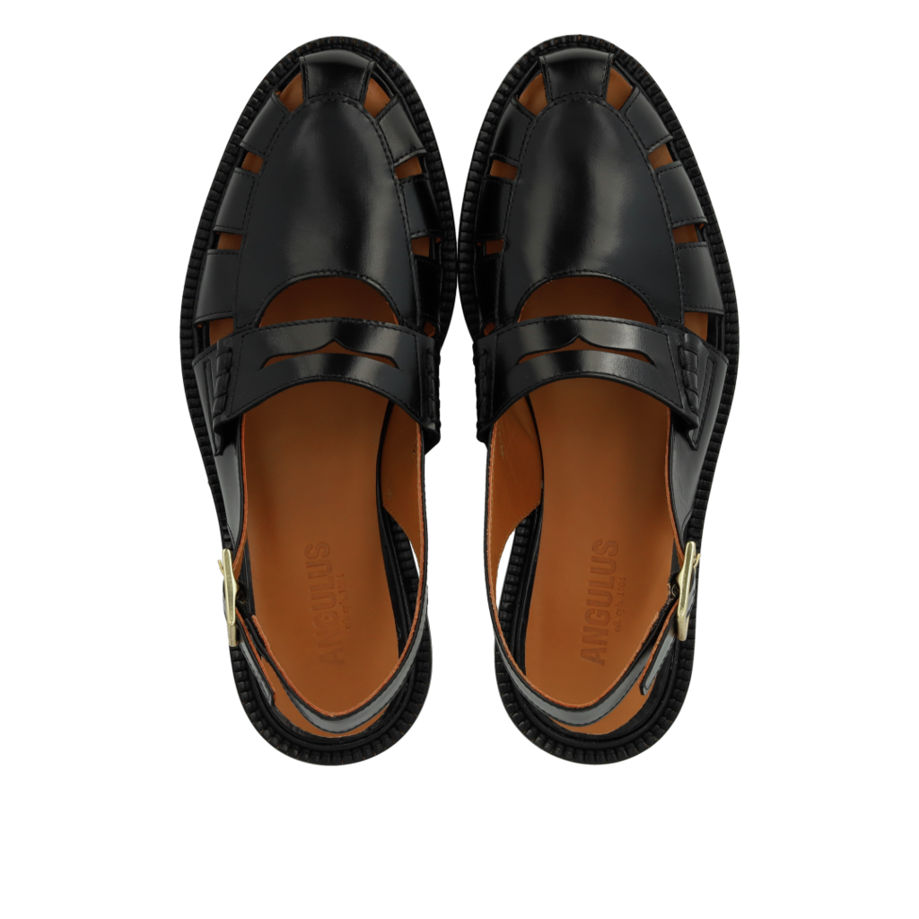 Loafernes design er beriget med et dekorativt cut-out mønster, der tilføjer en subtil elegance. Den åbne hæl giver et moderne twist, og det gyldne spænde tilføjer et strejf af raffineret glamour. Den lette tunitsål sikrer komfort og fleksibilitet, hvilket gør disse sko ideelle til både hverdagsbrug og mere formelle lejligheder. Med et skarpt øje for detaljerne leverer Angulus endnu en gang et produkt, der kombinerer kvalitet med stil. Perfekte til enhver modebevidst person, der ønsker at tilføje et sofistikeret element til sin garderobe.
