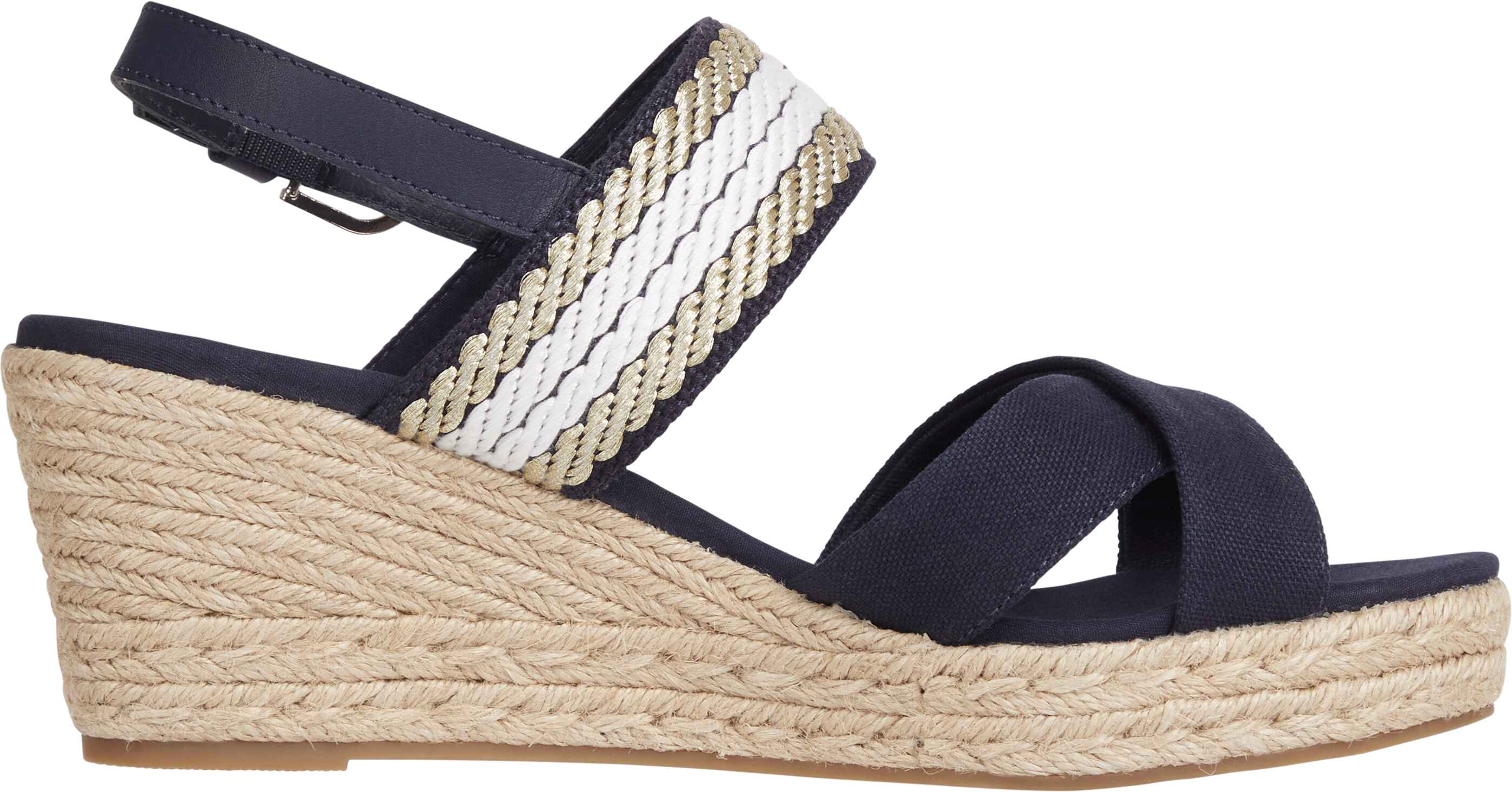 Webbing Strap Mid Wedge Sandaler, Space Blue, 41