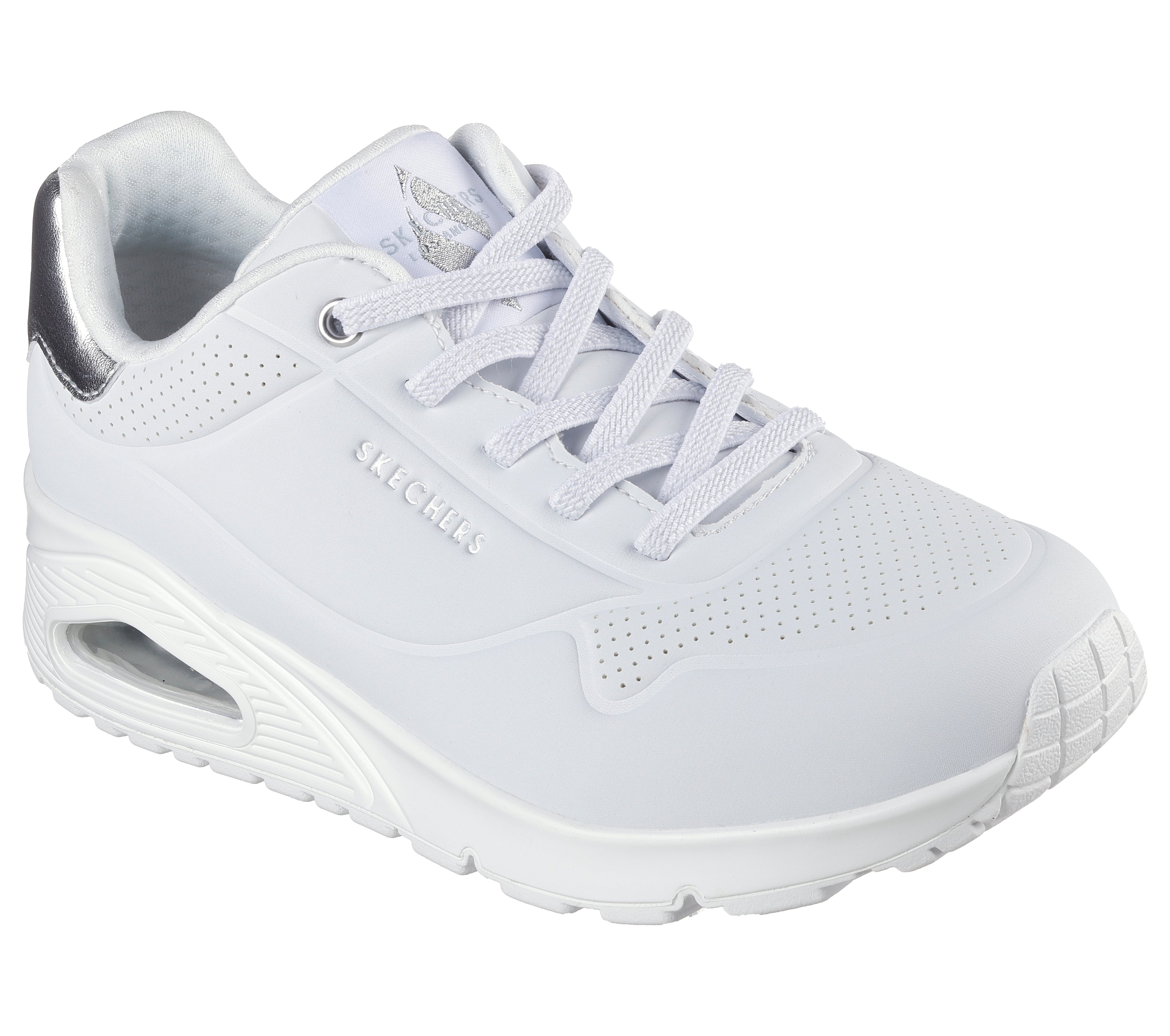 Uno Shimmer Sneakers, White/Silver, 39