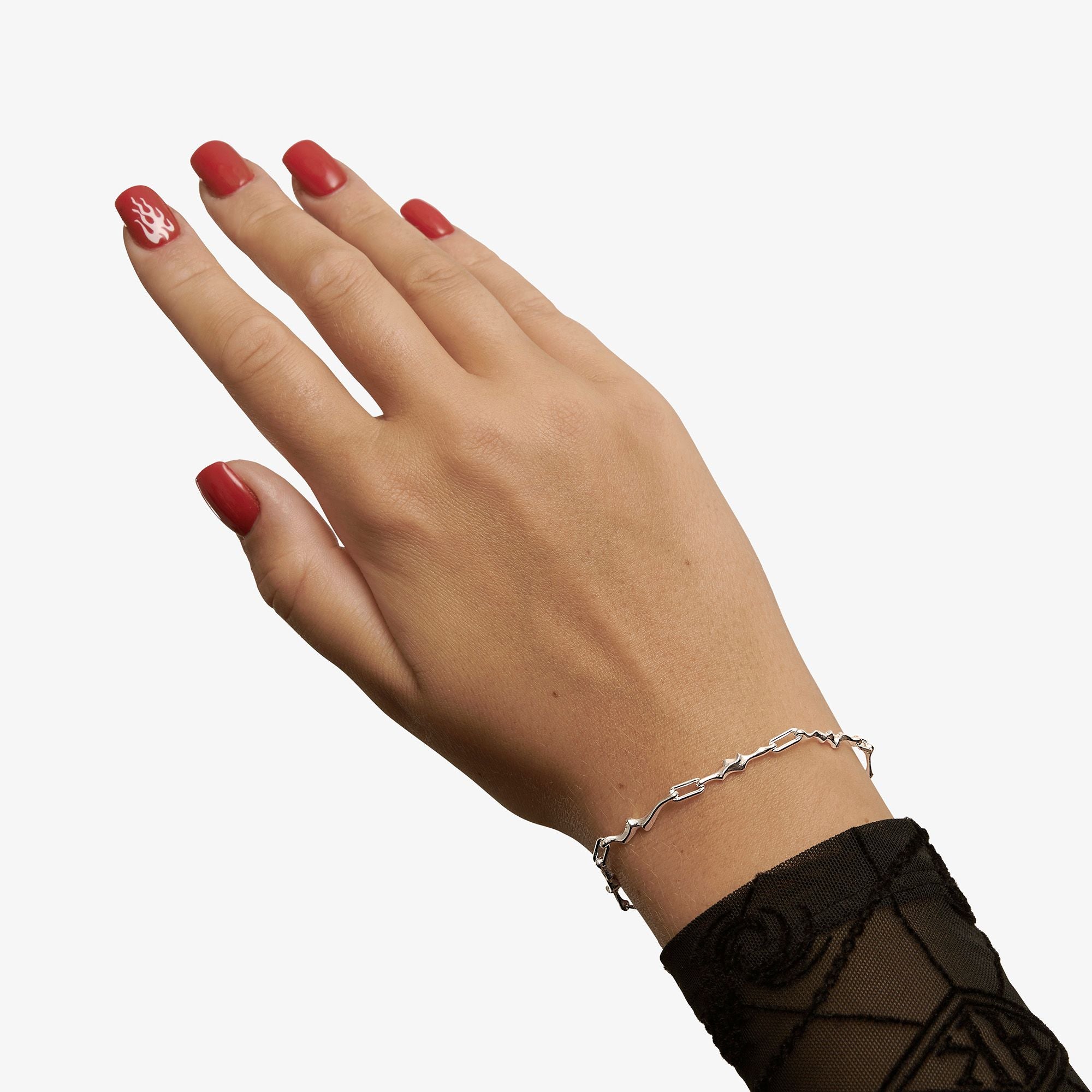 Burning Flames Armbånd, Silver, 17 cm
